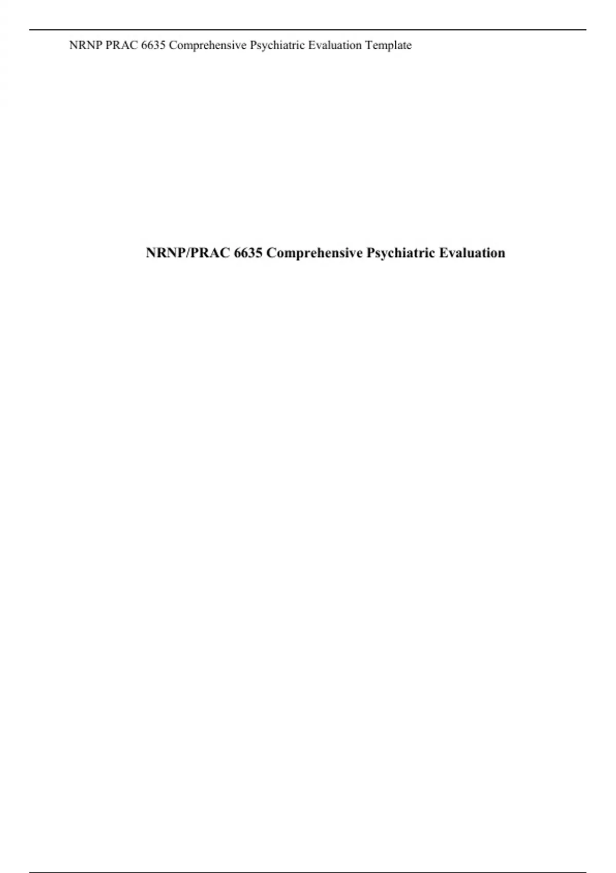 NRNP PRAC 6635 Comprehensive Psychiatric Evaluation Template! RATED A+