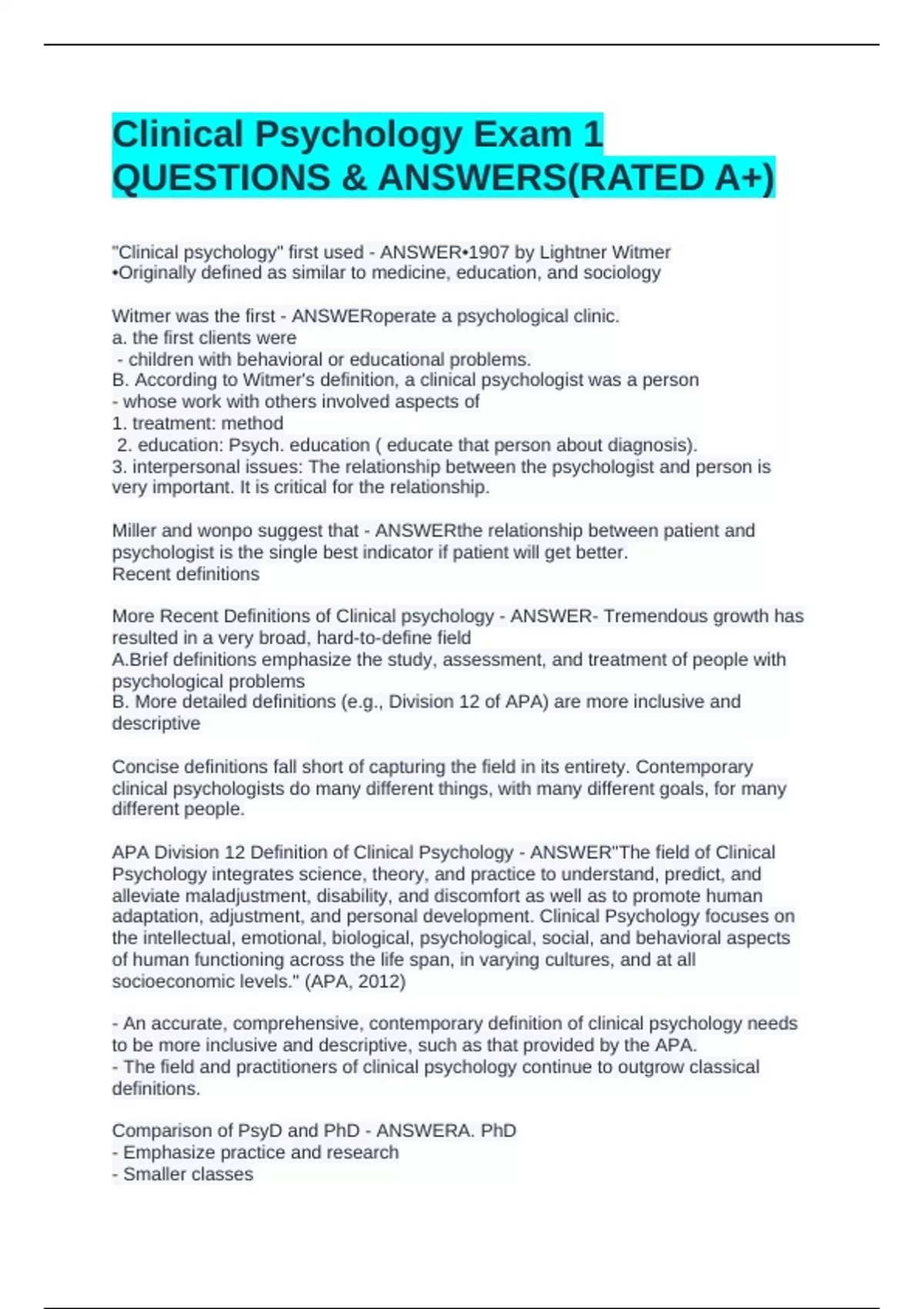 APA Division 12 Definition of Clinical Psychology - ANSWER"The field of Clinical