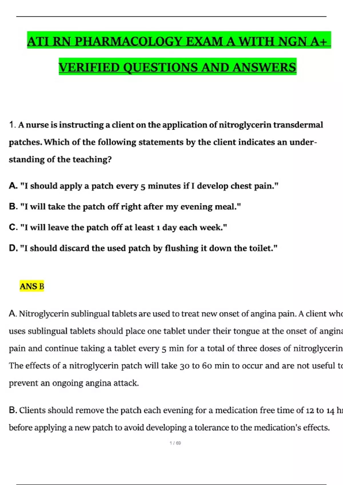 ATI RN PHARMACOLOGY EXAM A WITH A+ VERIFIED QUESTIONS AND ANSWERS ( V3 )