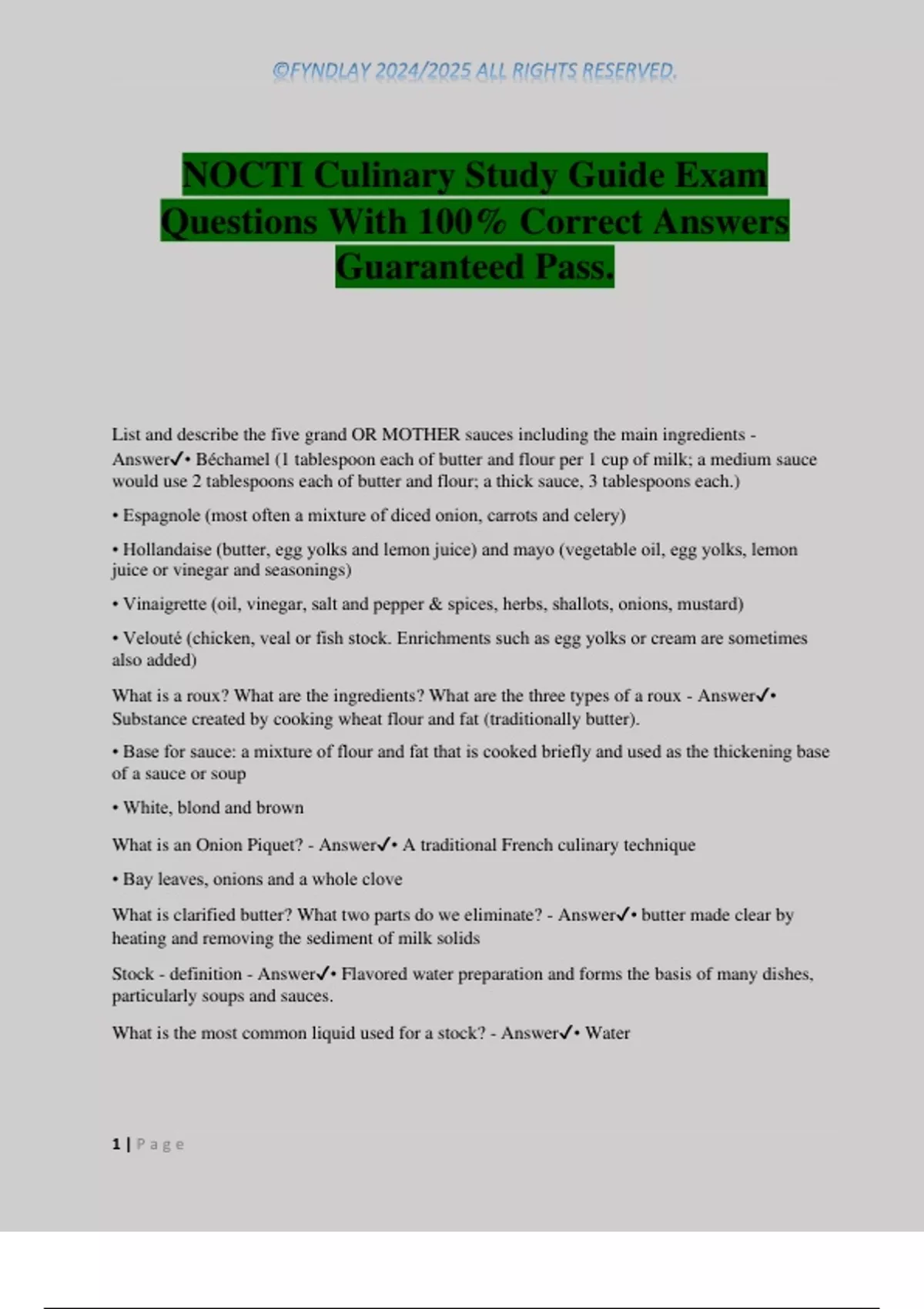 NOCTI Culinary Study Guide Exam Questions With 100% Correct Answers Guaranteed Pass.