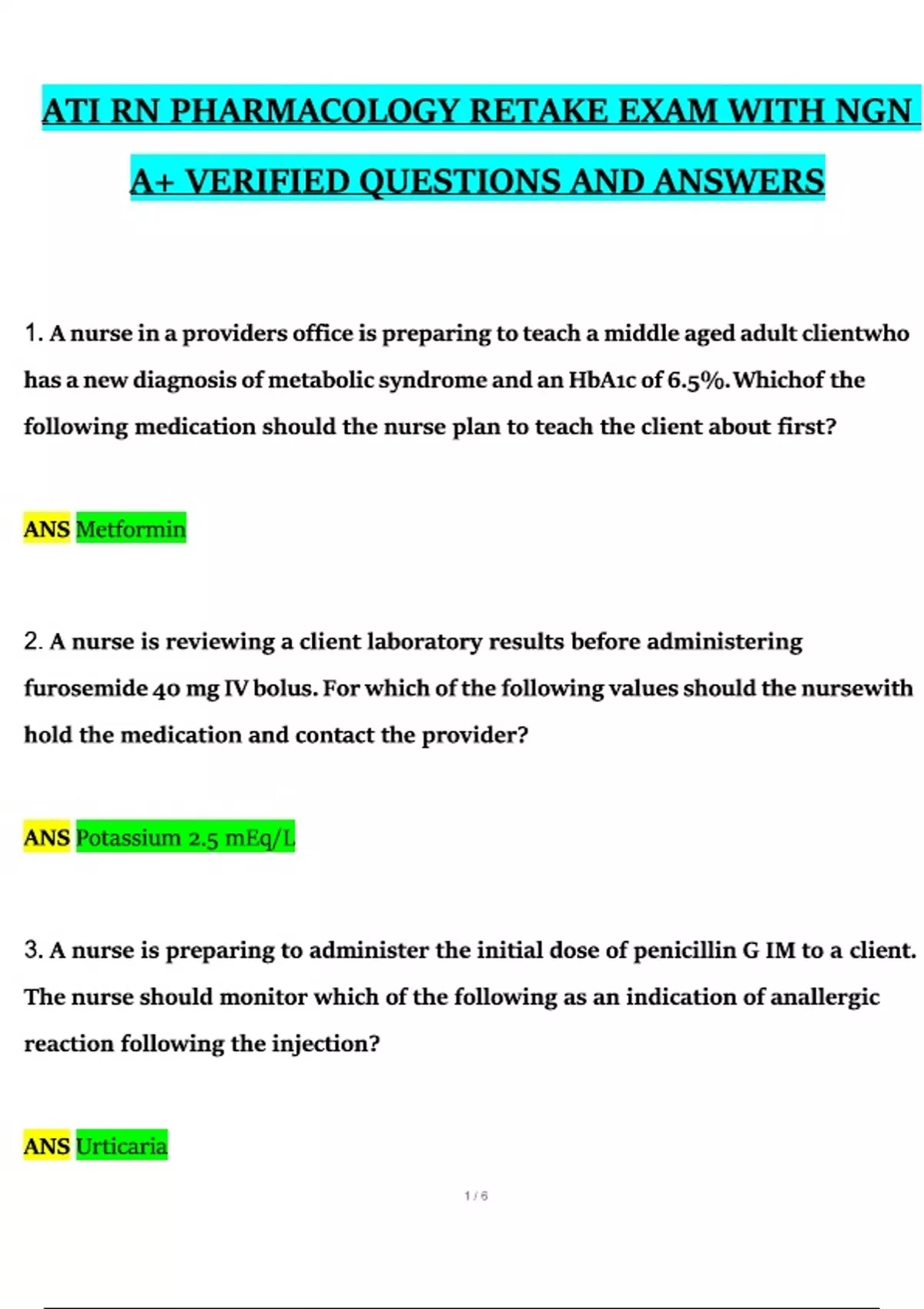 ATI RN PHARMACOLOGY RETAKE EXAM WITH A+ VERIFIED QUESTIONS AND ANSWERS ( V3 )
