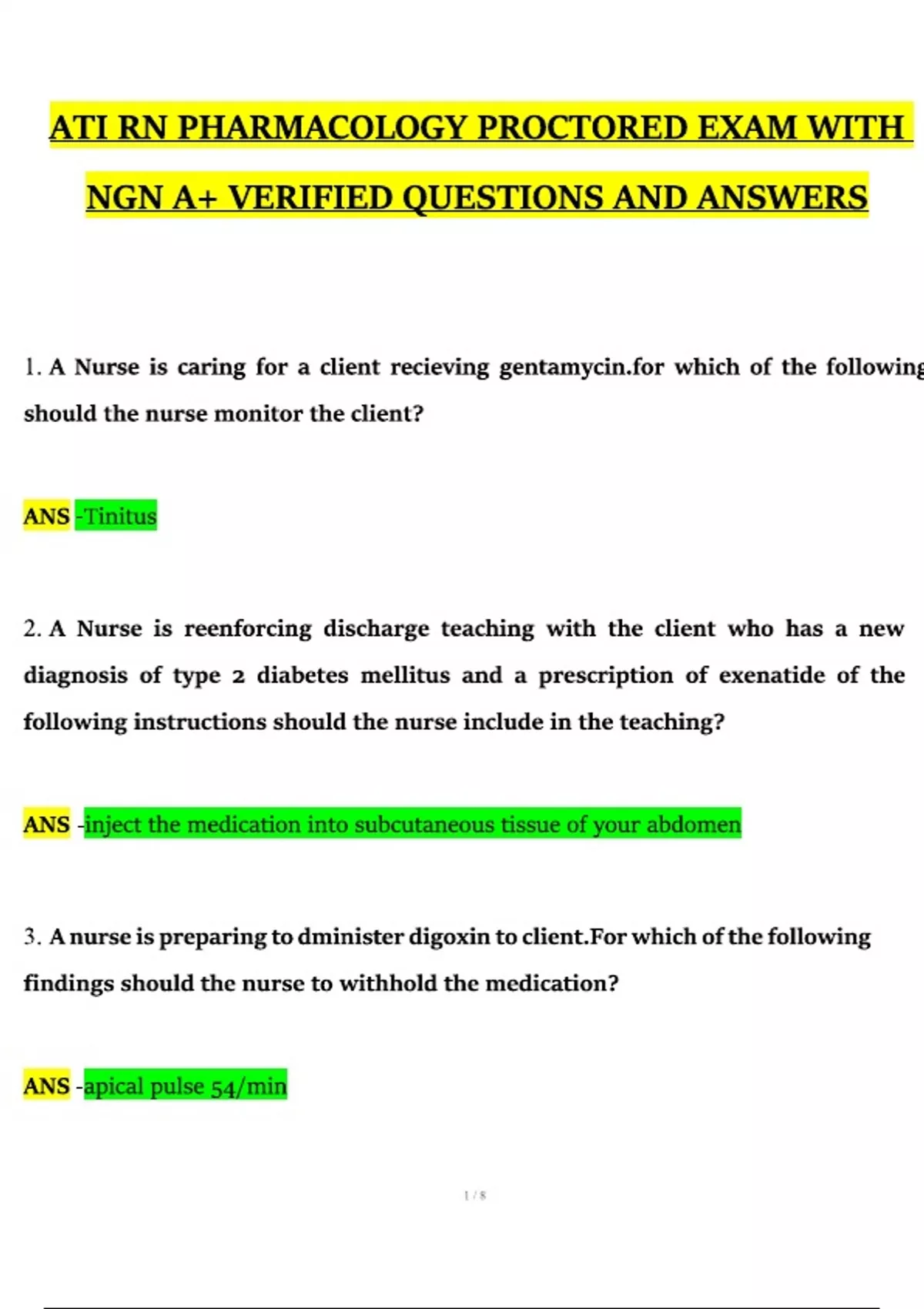 ATI RN PHARMACOLOGY PROCTORED EXAM WITH A+ VERIFIED QUESTIONS AND ANSWERS ( V3 )