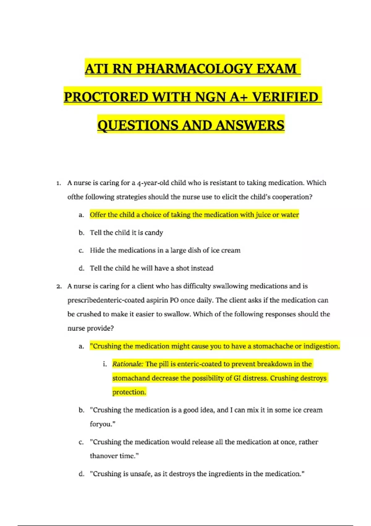 ATI RN PHARMACOLOGY EXAM PROCTORED WITH A+ VERIFIED QUESTIONS AND ANSWERS ( V4 )