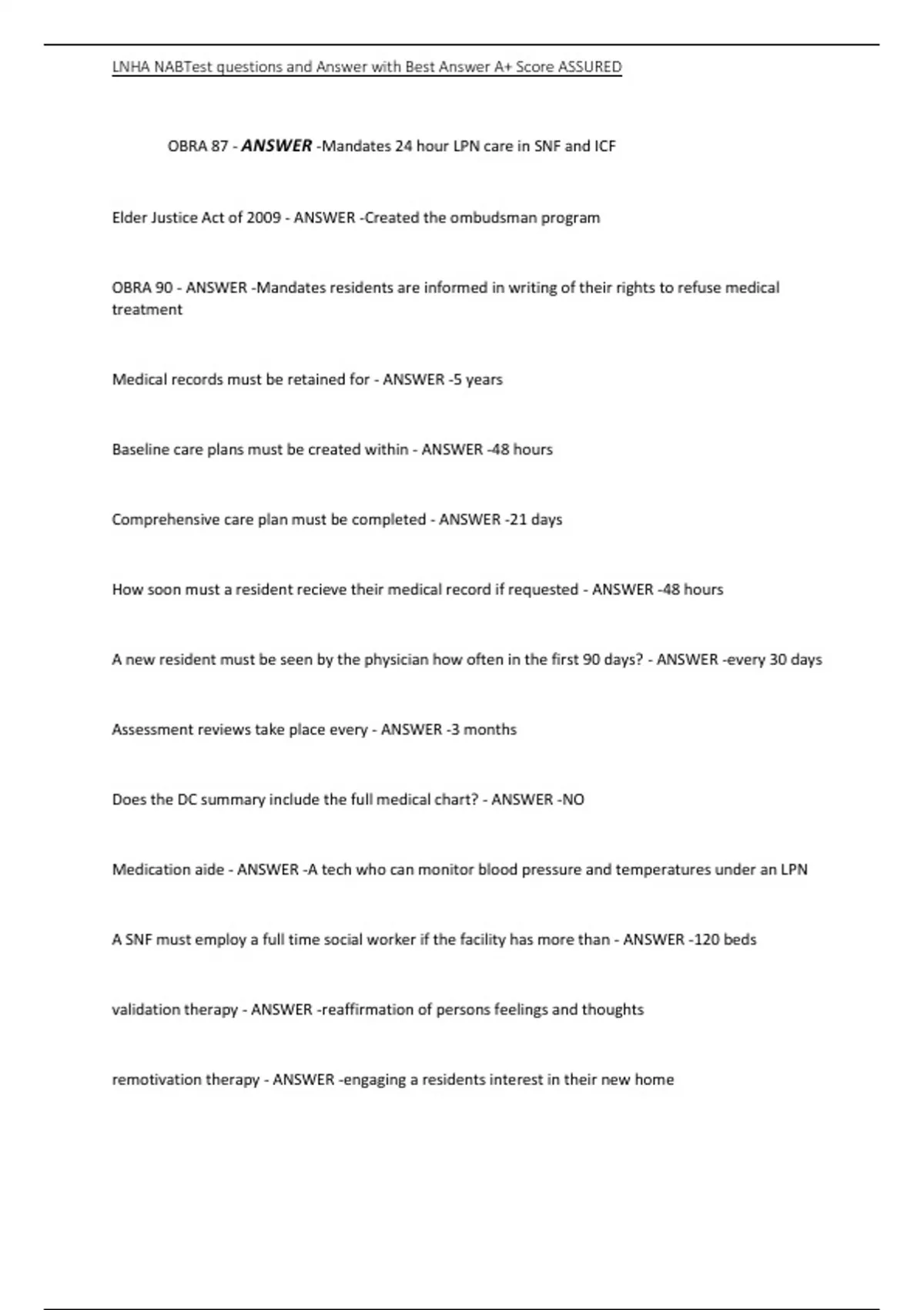 , LNHA NABTest questions and Answer with Best Answer A+ Score ASSURED