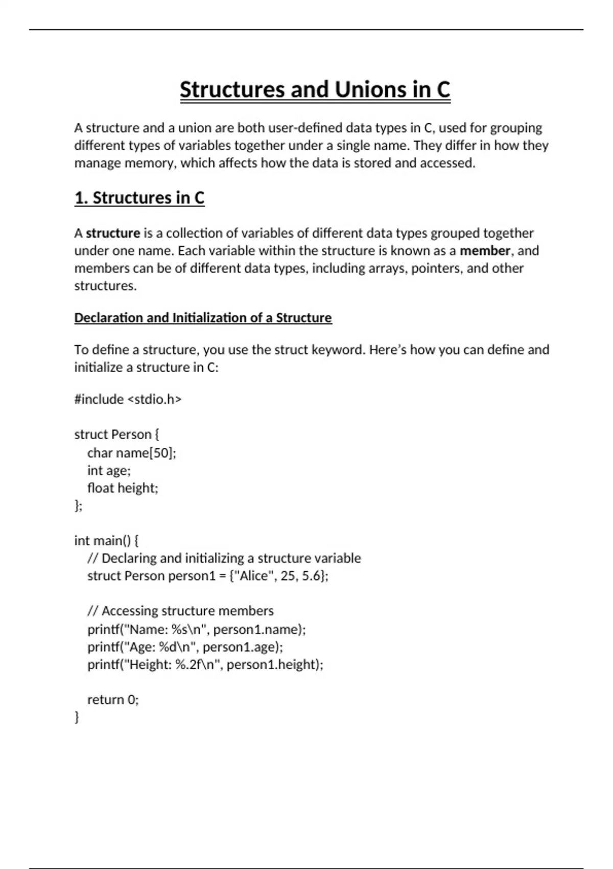 1. Structures in C