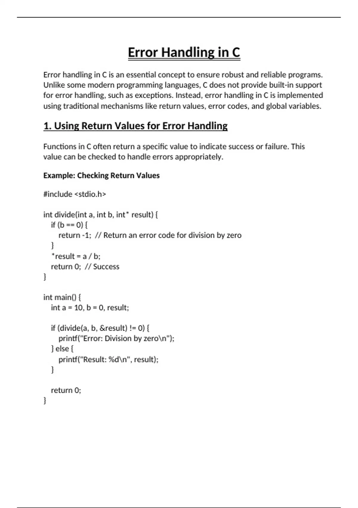 Error handling in C is an essential concept to ensure robust and reliable programs.