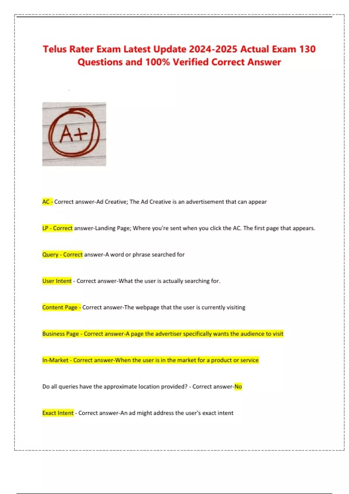 Questions and 100% Verified Correct Answer