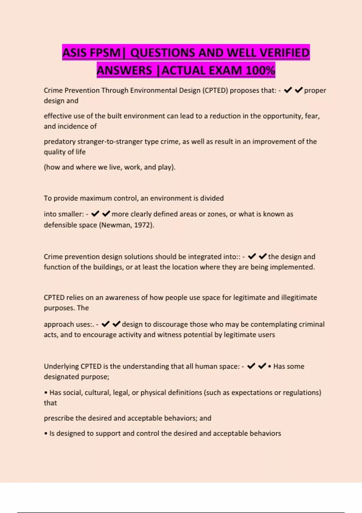 ASIS FPSM| QUESTIONS AND WELL VERIFIED