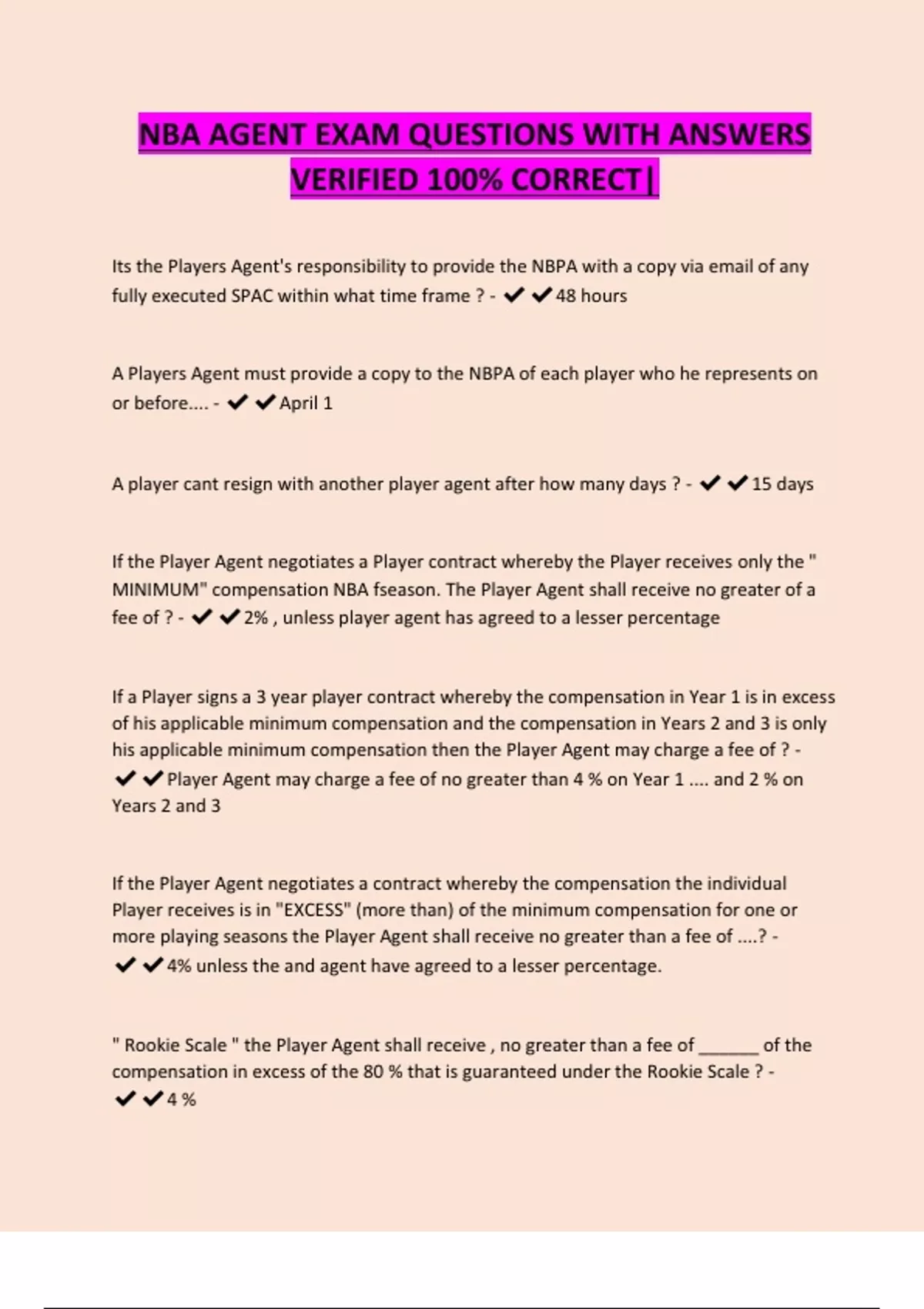 NBA AGENT EXAM QUESTIONS WITH ANSWERS