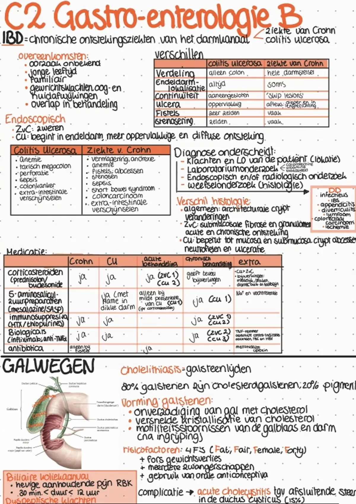 Complete en overzichtelijke handgeschreven samenvatting van cluster C KVS, module C2 Gastroenterologie B, van de studie geneeskunde van het Radboud.