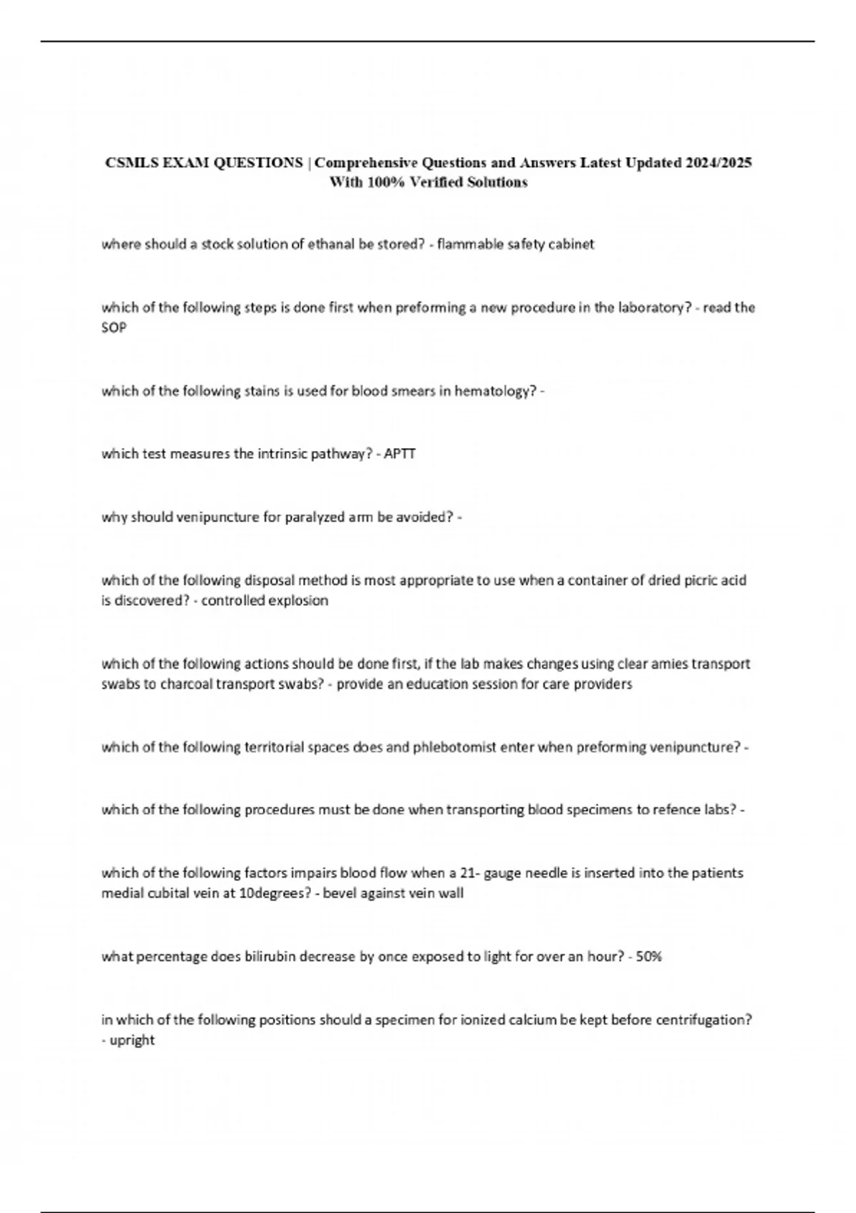 csmls exam questions comprehensive questions and