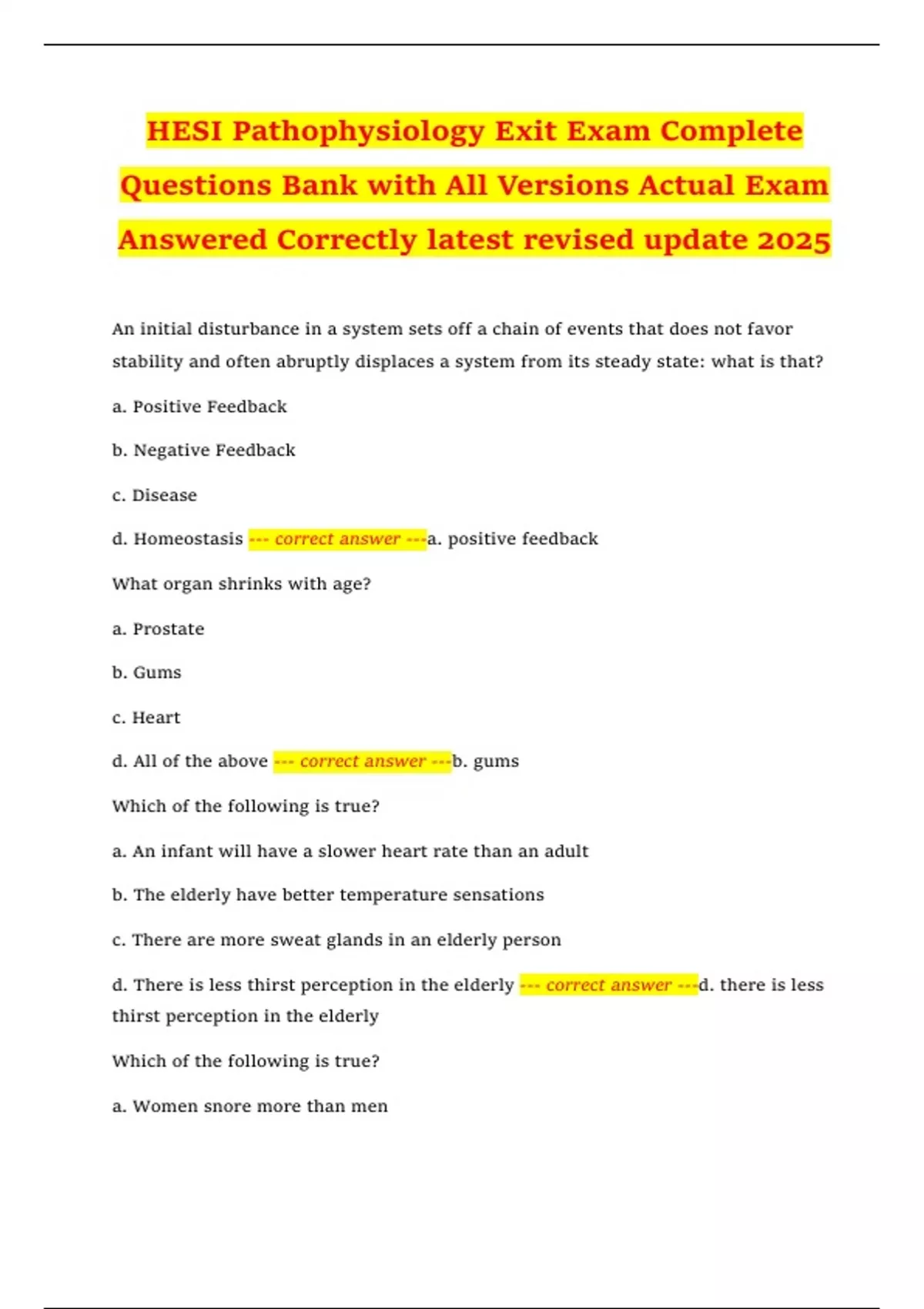 d. Homeostasis --- correct answer ---a. positive feedback