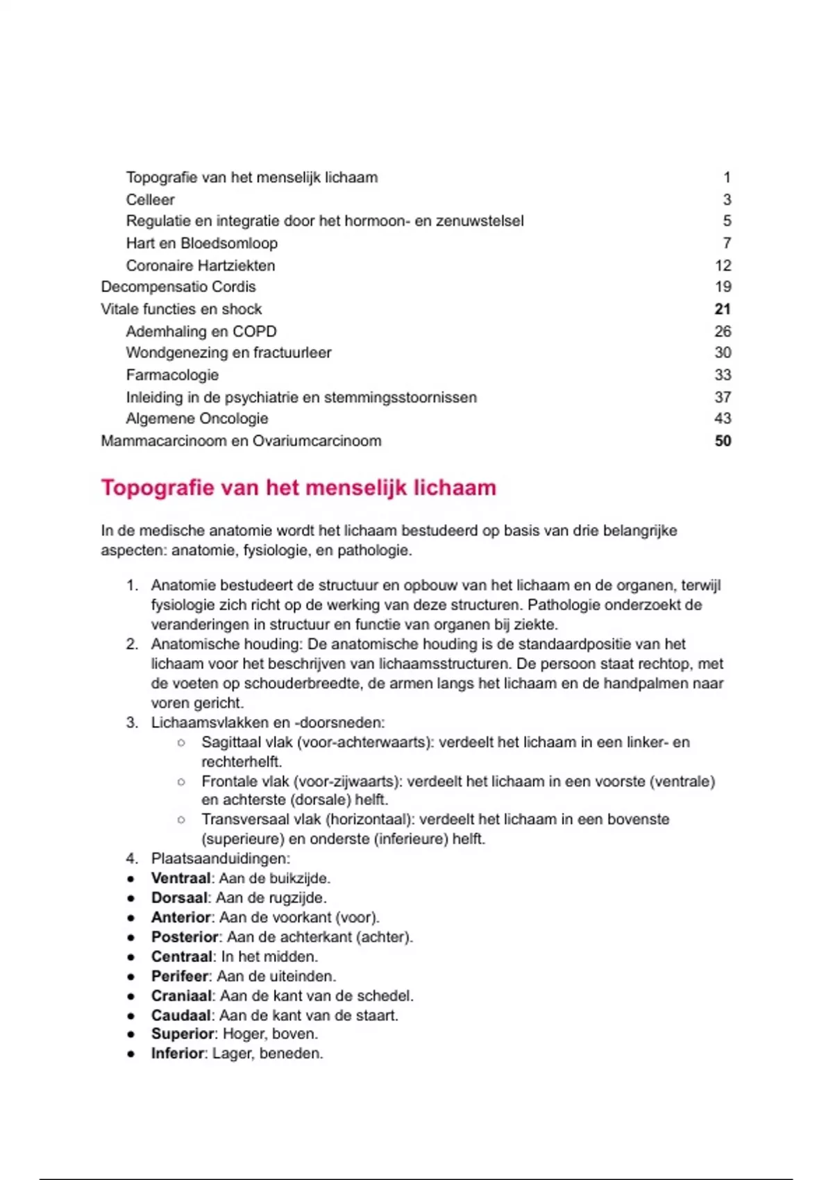 1. Anatomie bestudeert de structuur en opbouw van het lichaam en de organen, terwijl