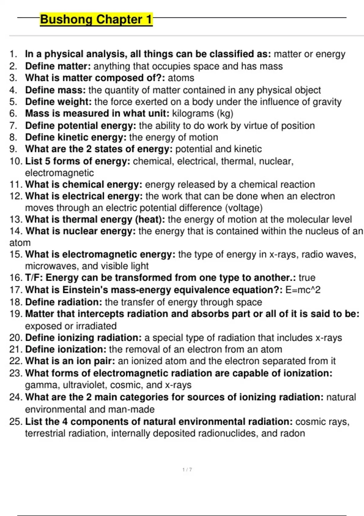 20. Define ionizing radiation: a special type of radiation that includes x-rays