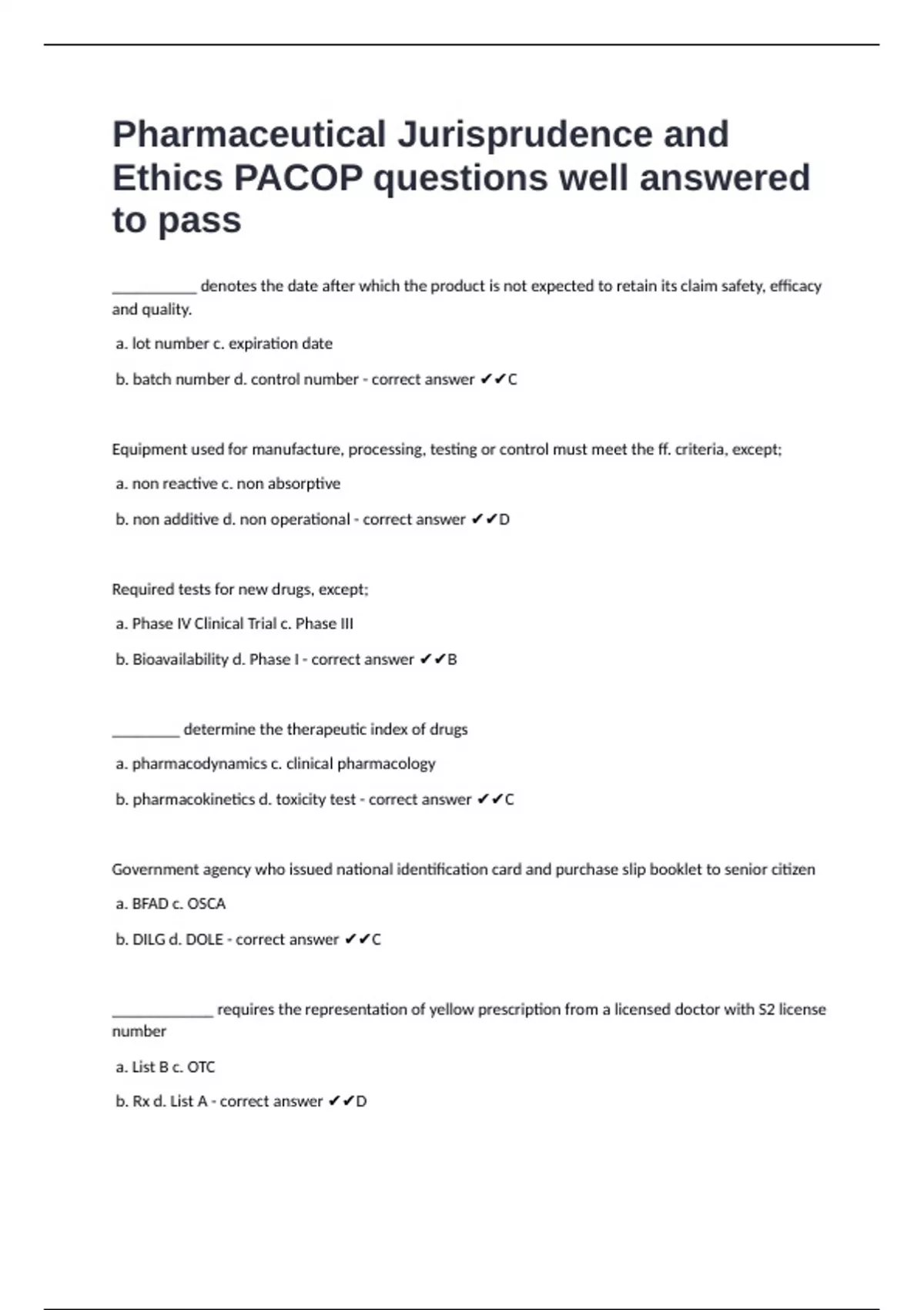 b. Pharmacy Law d. Dangerous Drug Act of 1972 - correct answer ✔✔D