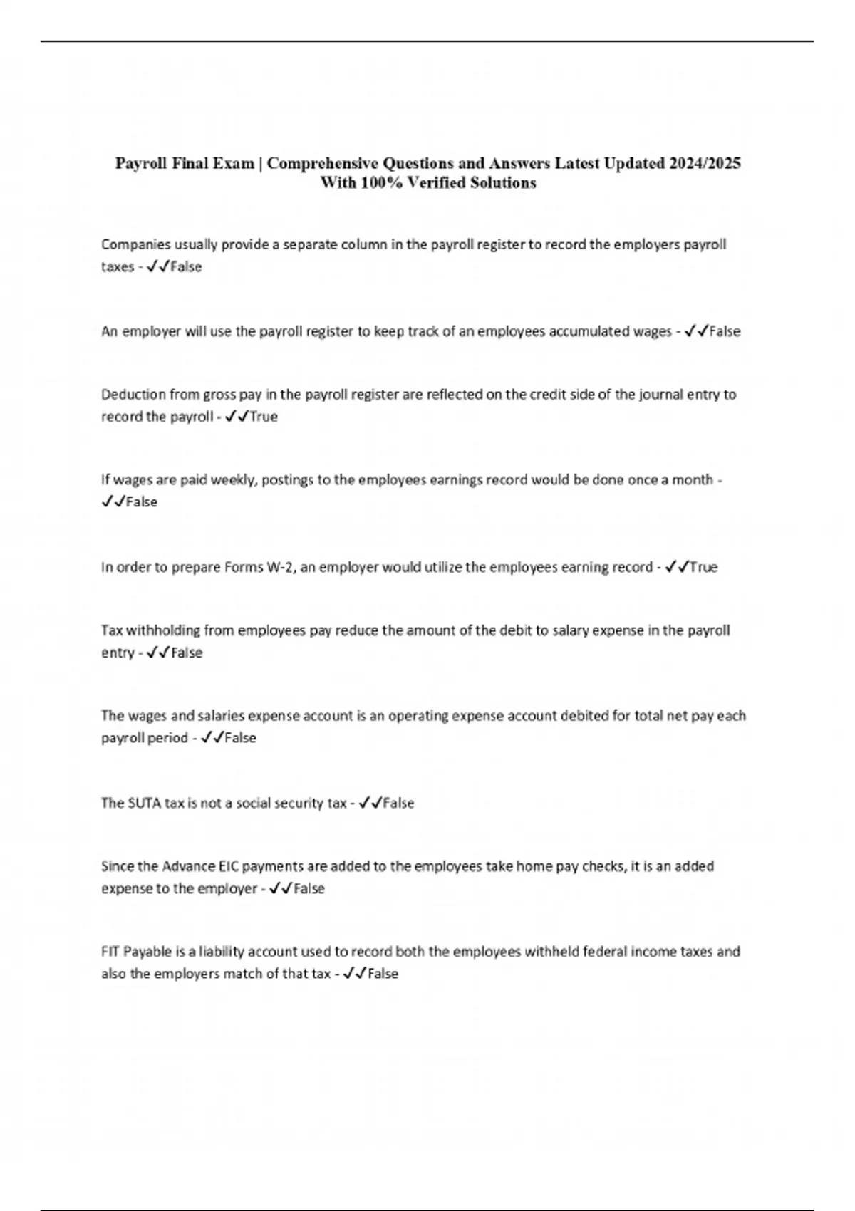 Payroll Final Exam | Comprehensive Questions and Answers