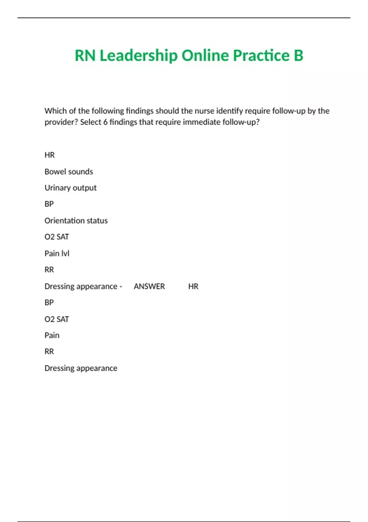 RN Leadership Online Practice B