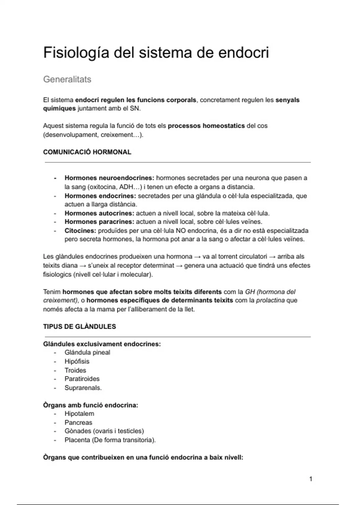 -​ Hormones endocrines: secretades per una glándula o cèl·lula especialitzada, que