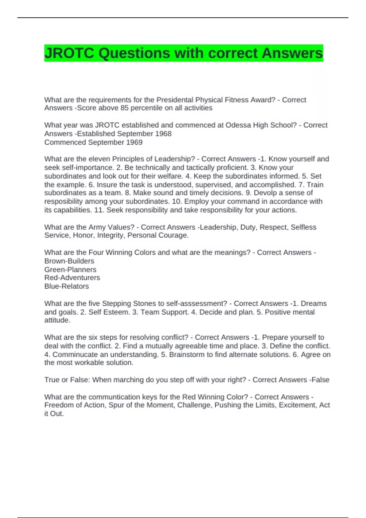 JROTC Questions with correct Answers