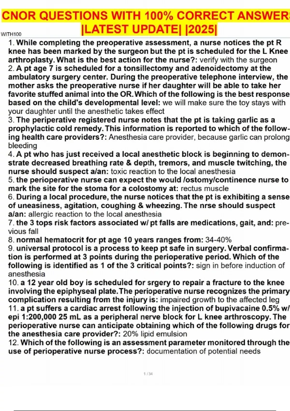 CNOR QUESTIONS WITH 100% CORRECT ANSWERS |LATEST UPDATE| |2025|CNOR QUESTIONS WITH 100% CORRECT ANSWERS |LATEST UPDATE| |2025|CNOR QUESTIONS WITH 100% CORRECT ANSWERS |LATEST UPDATE| |2025|CNOR QUESTIONS WITH 100% CORRECT ANSWERS |LATEST UPDATE| |2025|