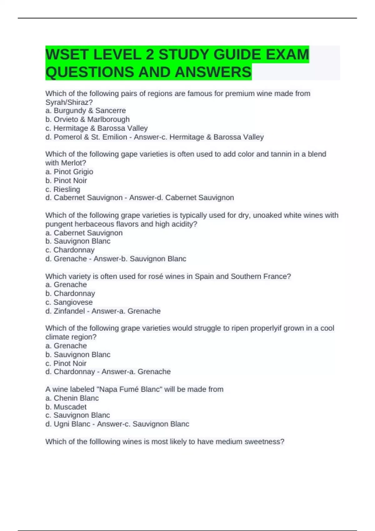 d. Grenache - Answer-b. Sauvignon Blanc
