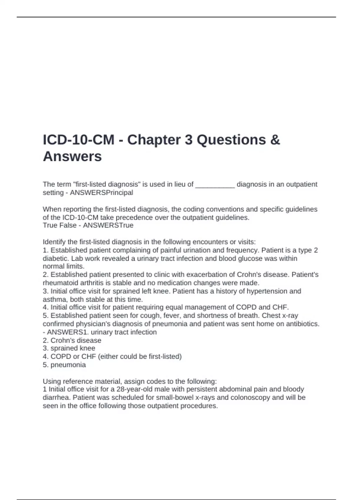 reported as the first-listed diagnosis. - ANSWERSTrue