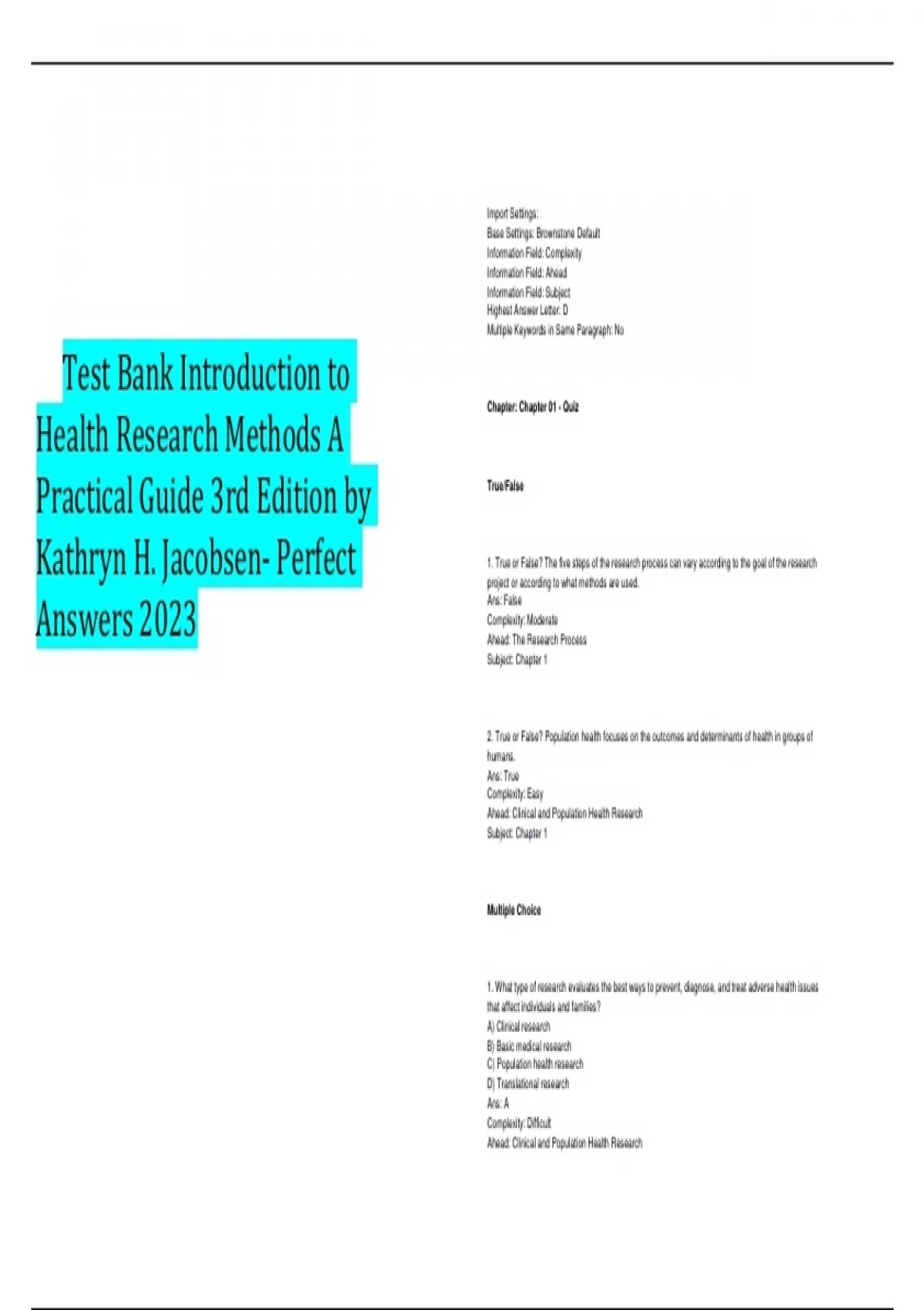 Kathryn H. Jacobsen- Perfect 1. True or False? The five steps of the research process can vary according to the goal of the research