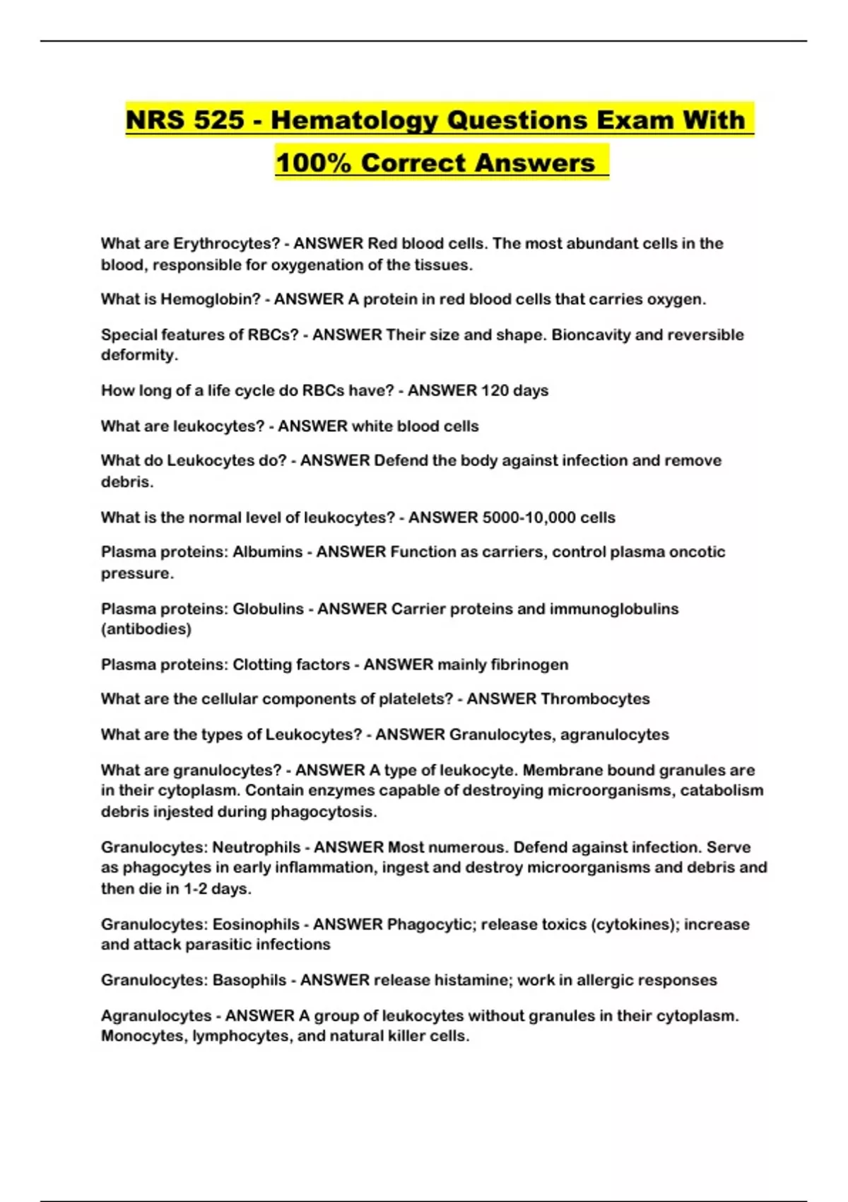 What are Erythrocytes? - ANSWER Red blood cells. The most abundant cells in the