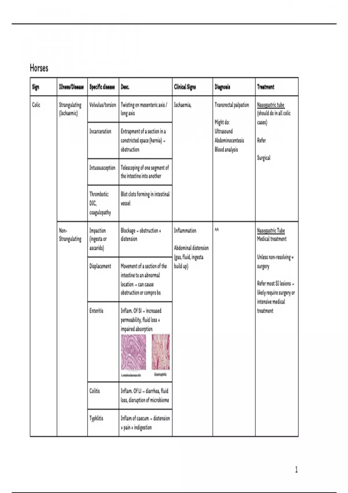 Colic Strangulating Volvulus/torsion Twisting on mesenteric axis / Ischaemia, Transrectal palpation Nasogastric tube