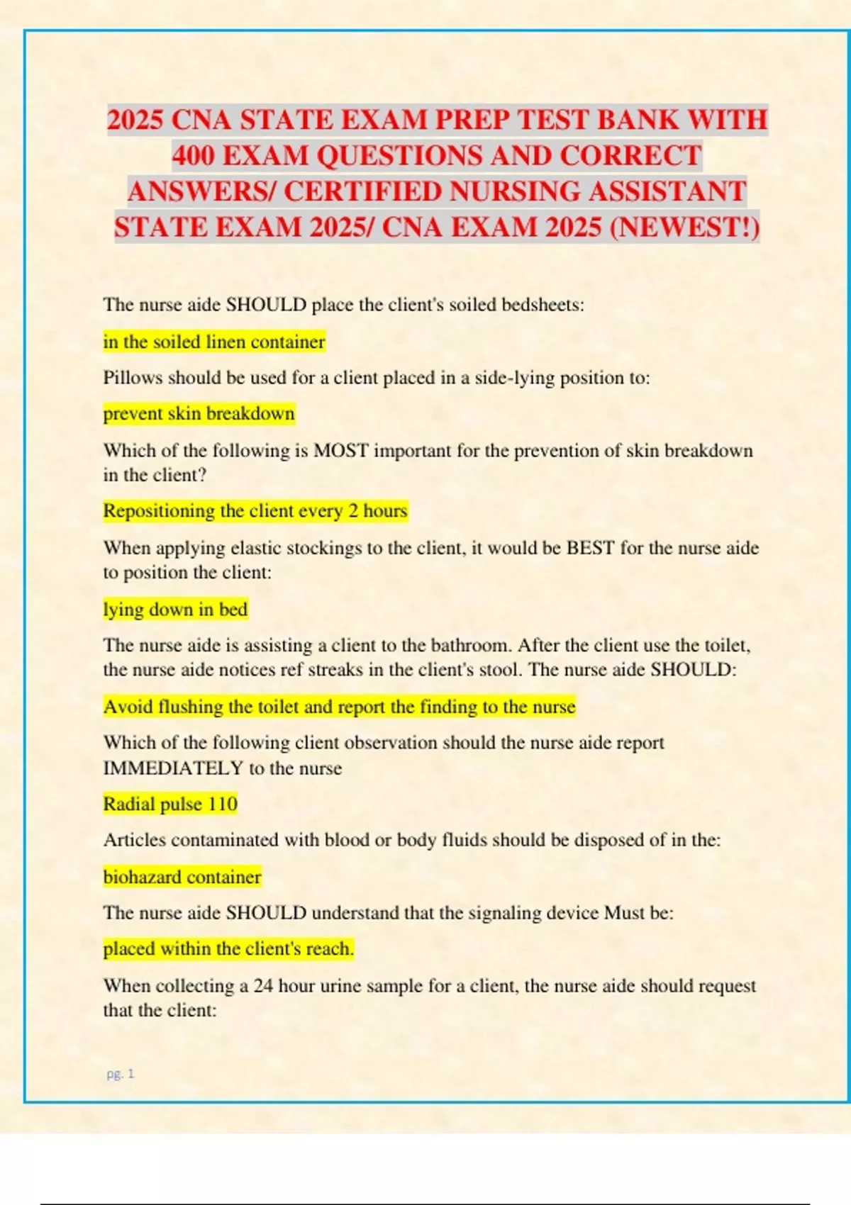 STATE EXAM 2025/ CNA EXAM 2025 (NEWEST!)
