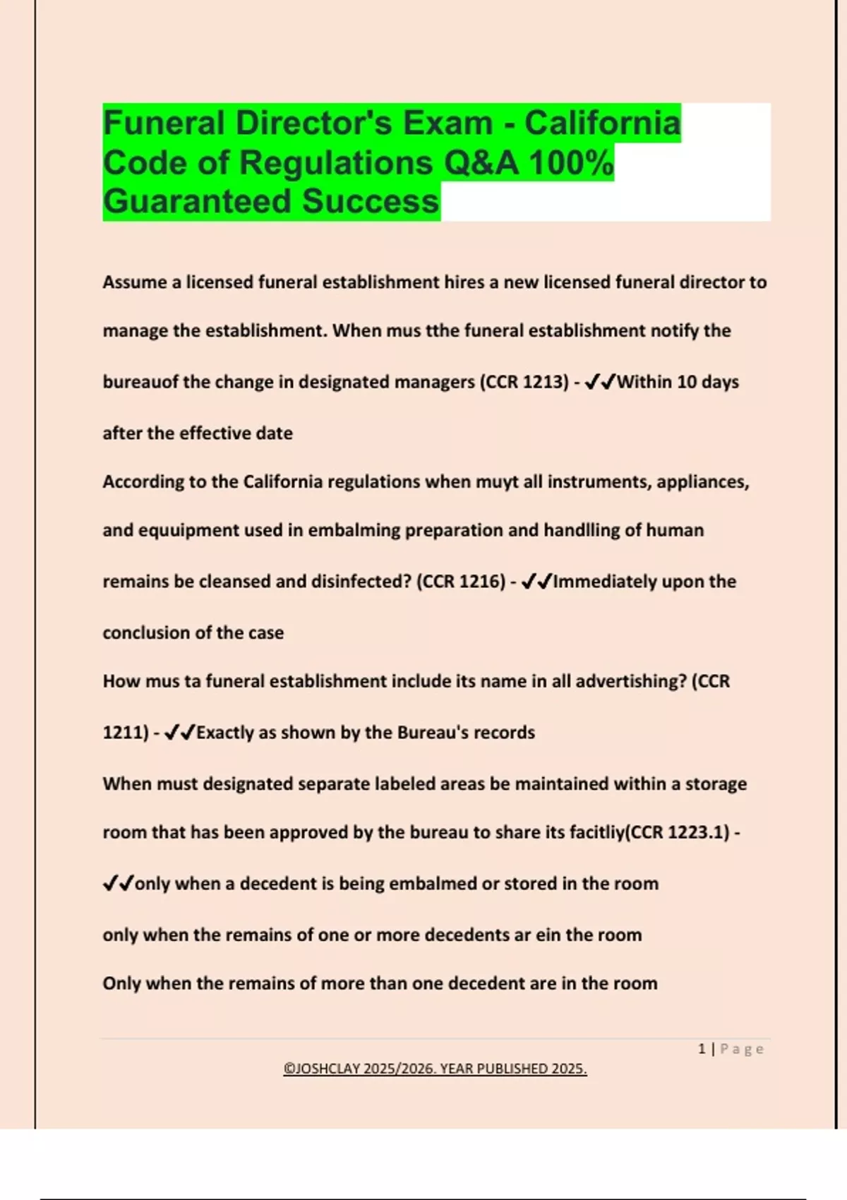 remains be cleansed and disinfected? (CCR 1216) - ✔✔Immediately upon the
