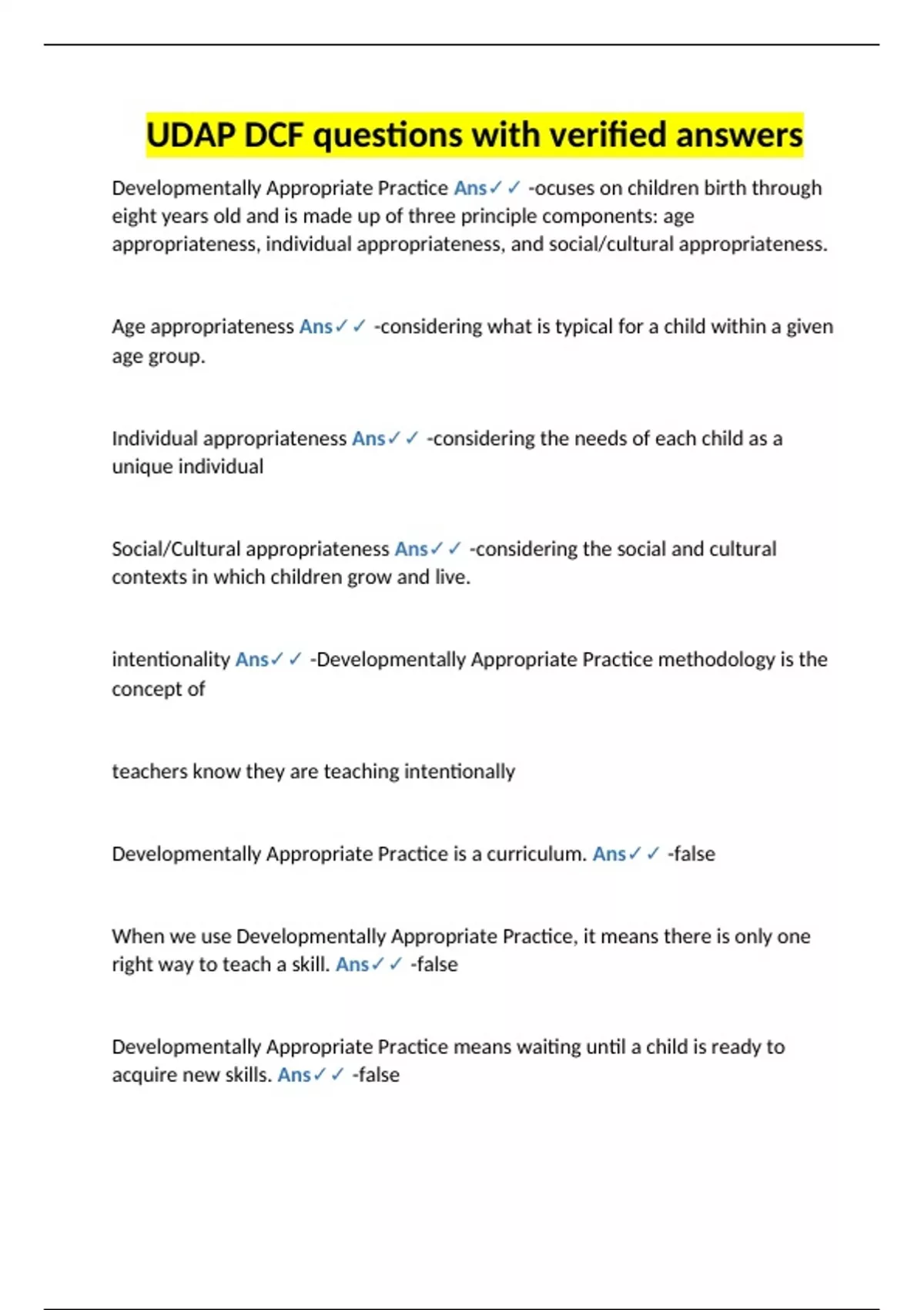 Developmentally Appropriate Practice Ans✓✓ -ocuses on children birth through