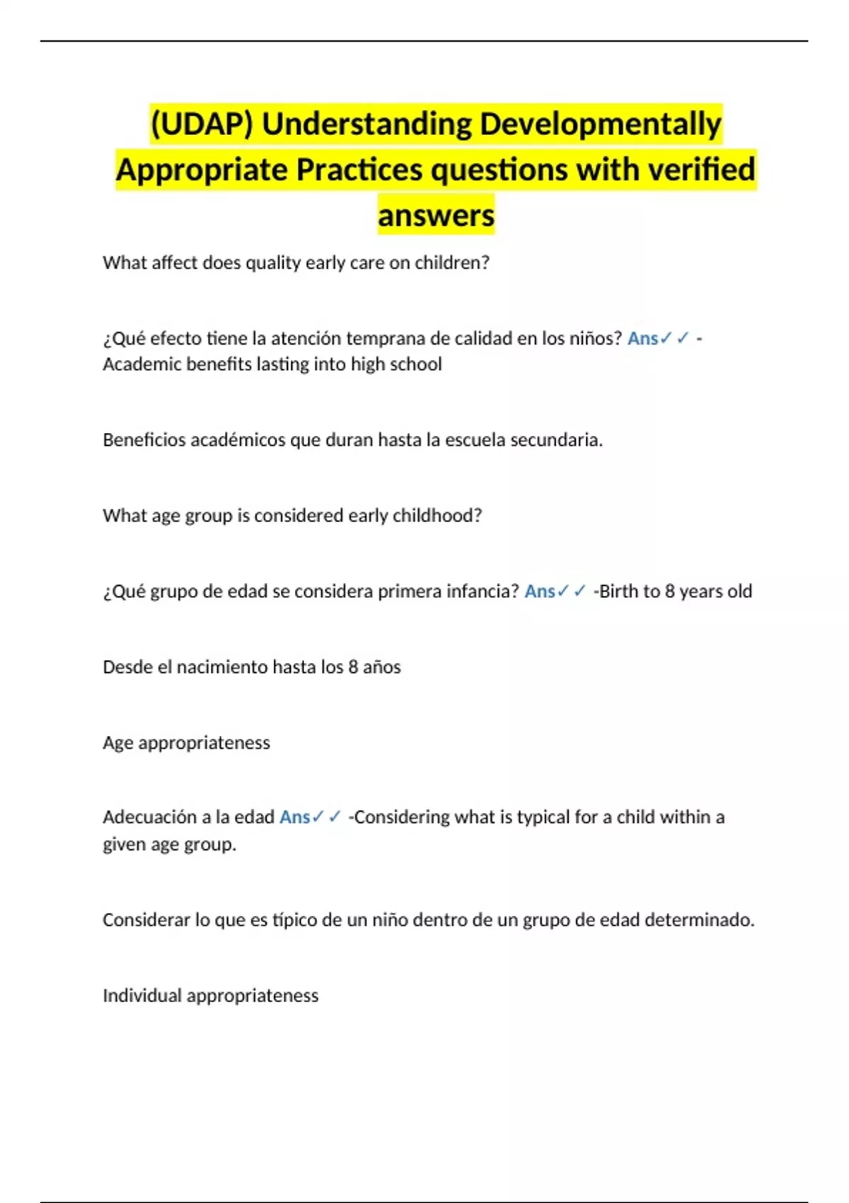 ¿Qué grupo de edad se considera primera infancia? Ans✓✓ -Birth to 8 years old