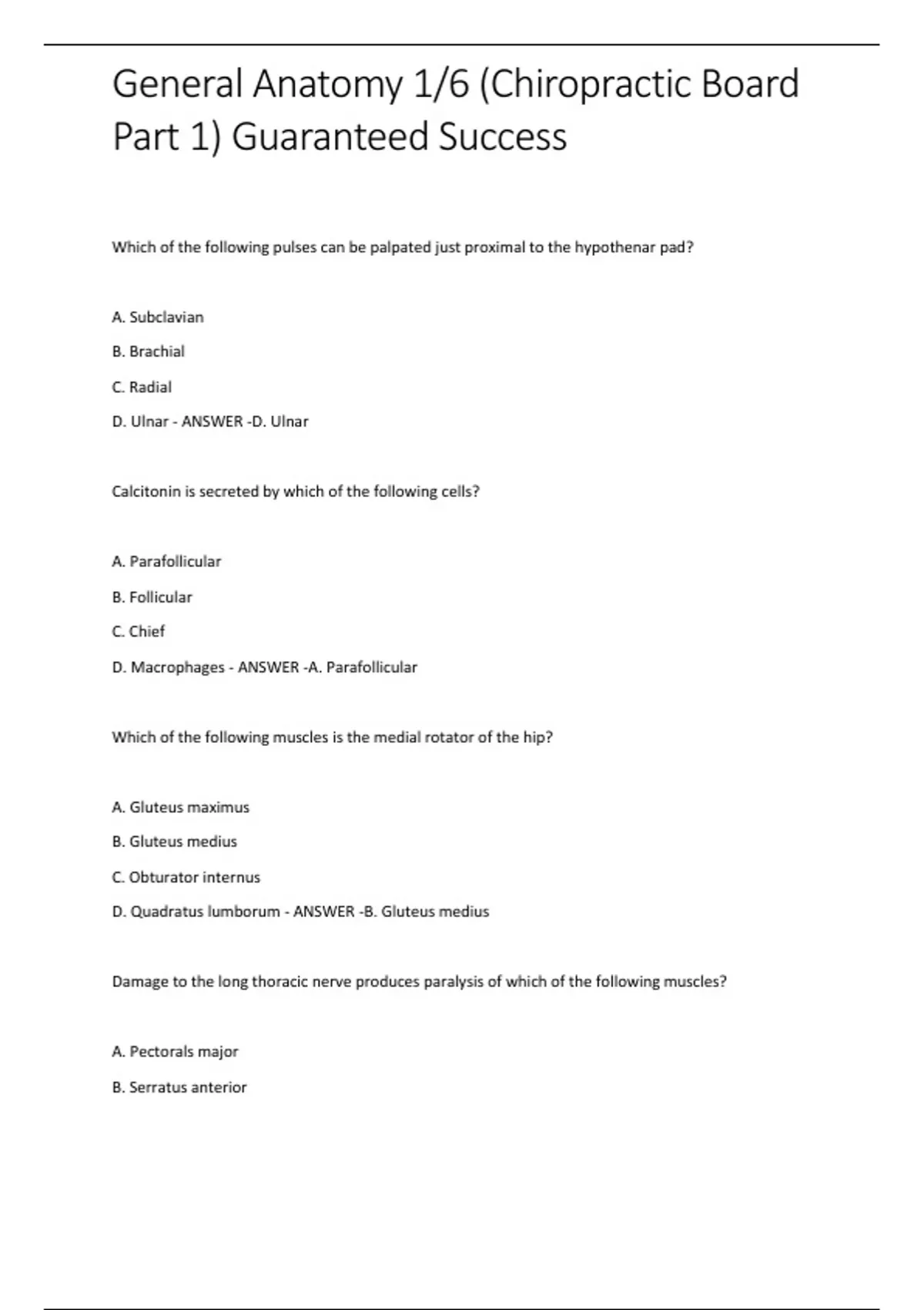 , General Anatomy 1/6 (Chiropractic Board