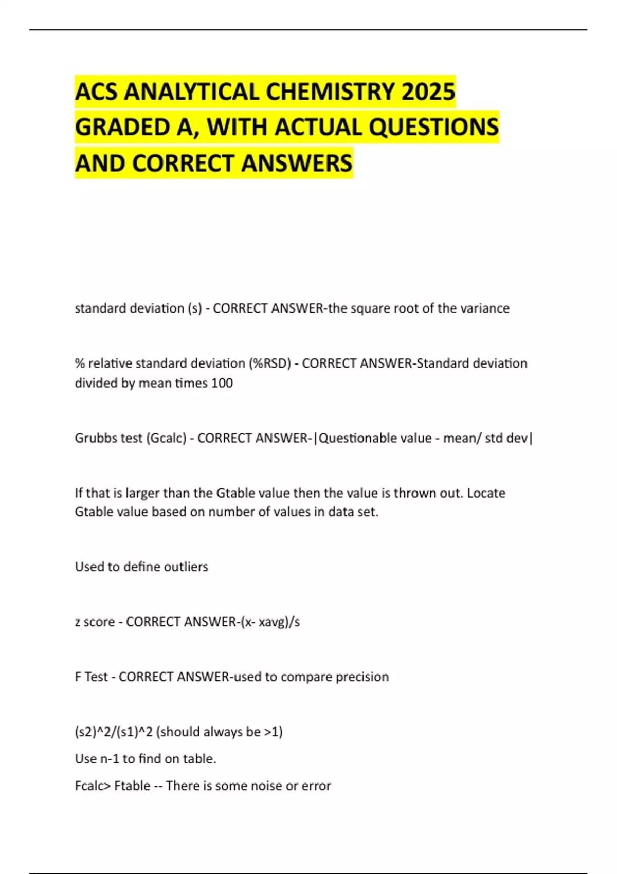% relative standard deviation (%RSD) - CORRECT ANSWER-Standard deviation