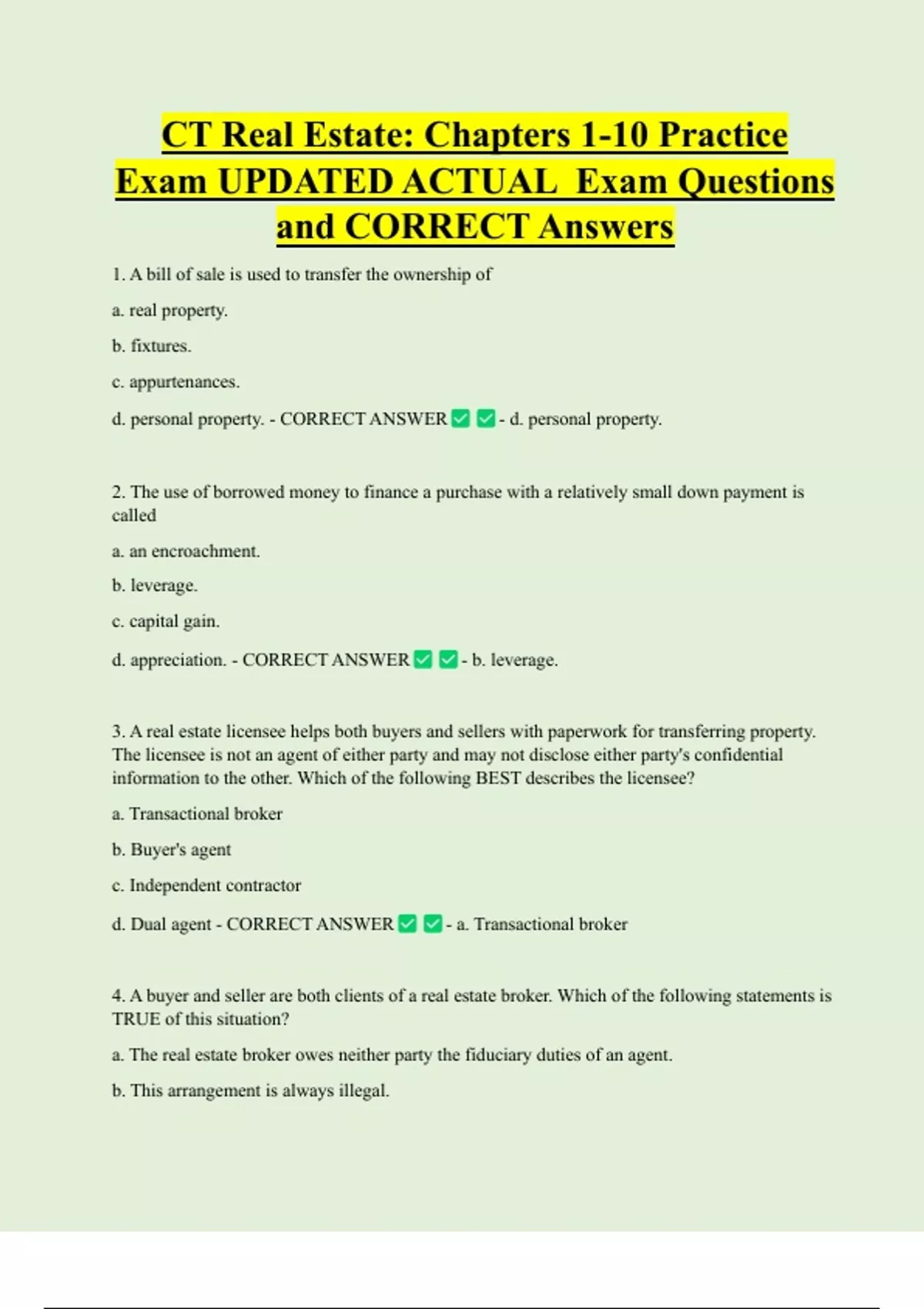 d. Dual agent - CORRECT ANSWER - a. Transactional broker