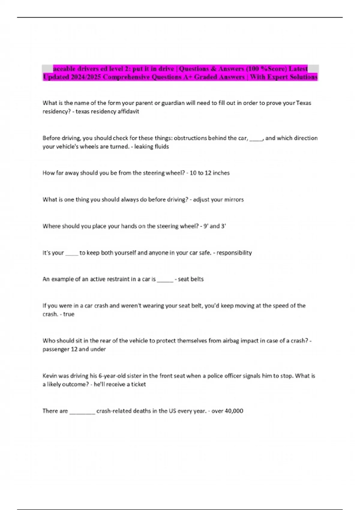 aceable drivers ed level 2: put it in drive | Questions & Answers