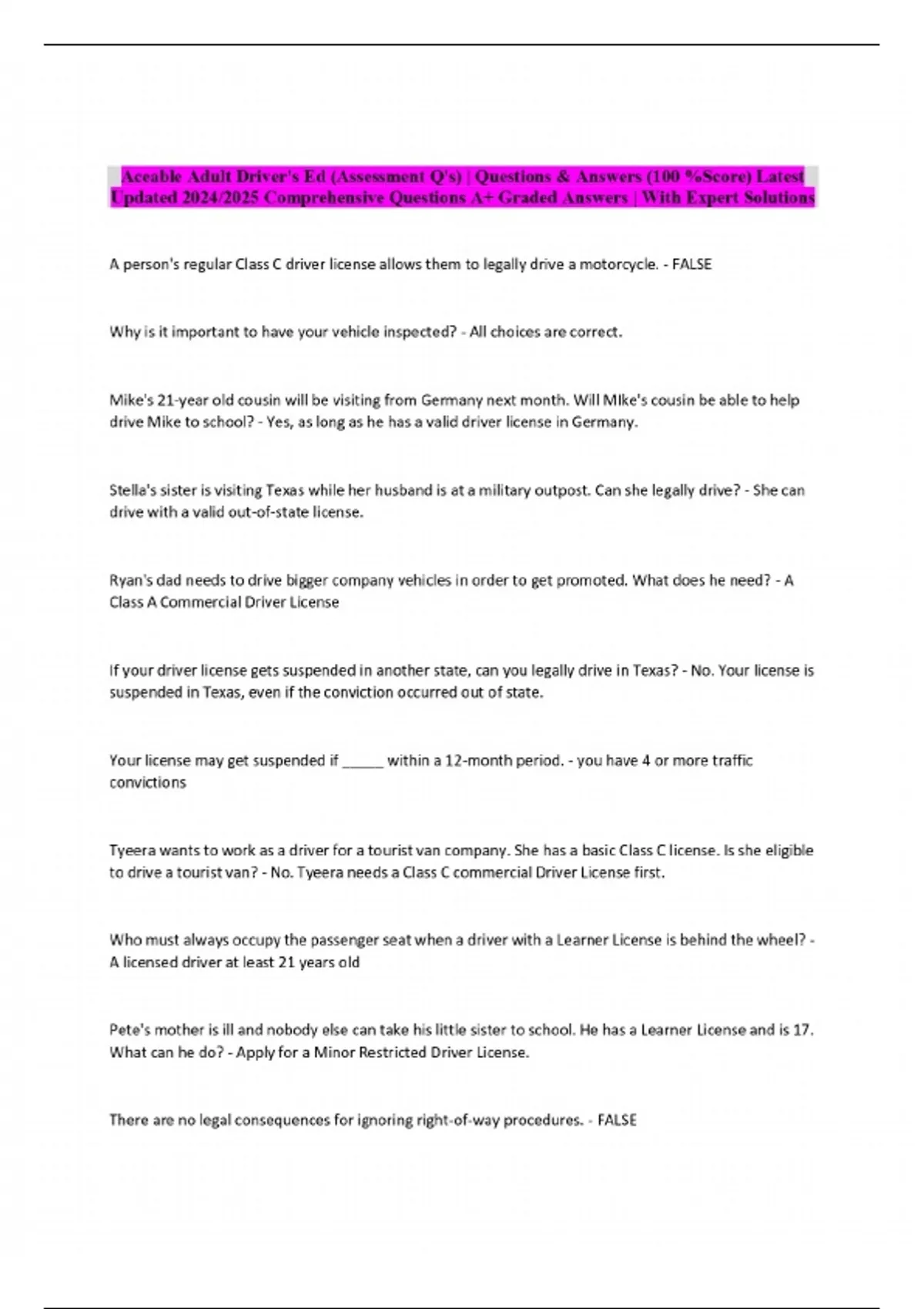 Aceable Adult Driver's Ed (Assessment Q's) | Questions & Answers
