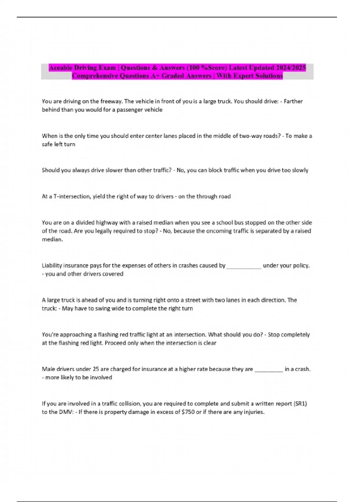 Aceable Driving Exam | Questions & Answers