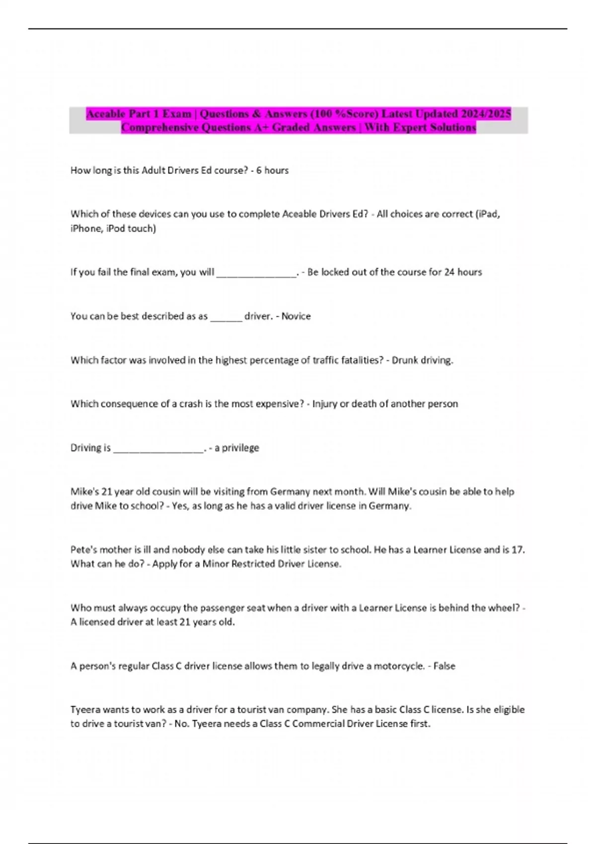 Aceable Part 1 Exam | Questions & Answers