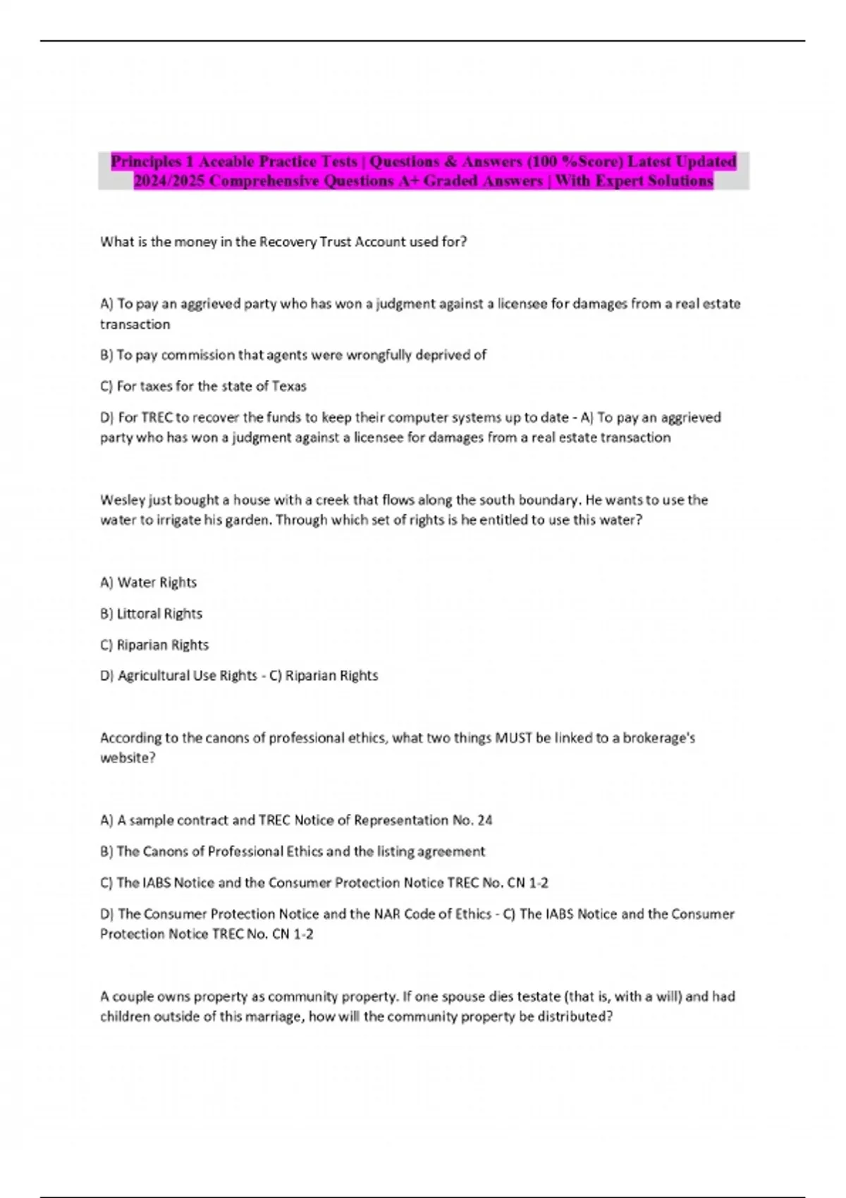 principles 1 aceable practice tests questions