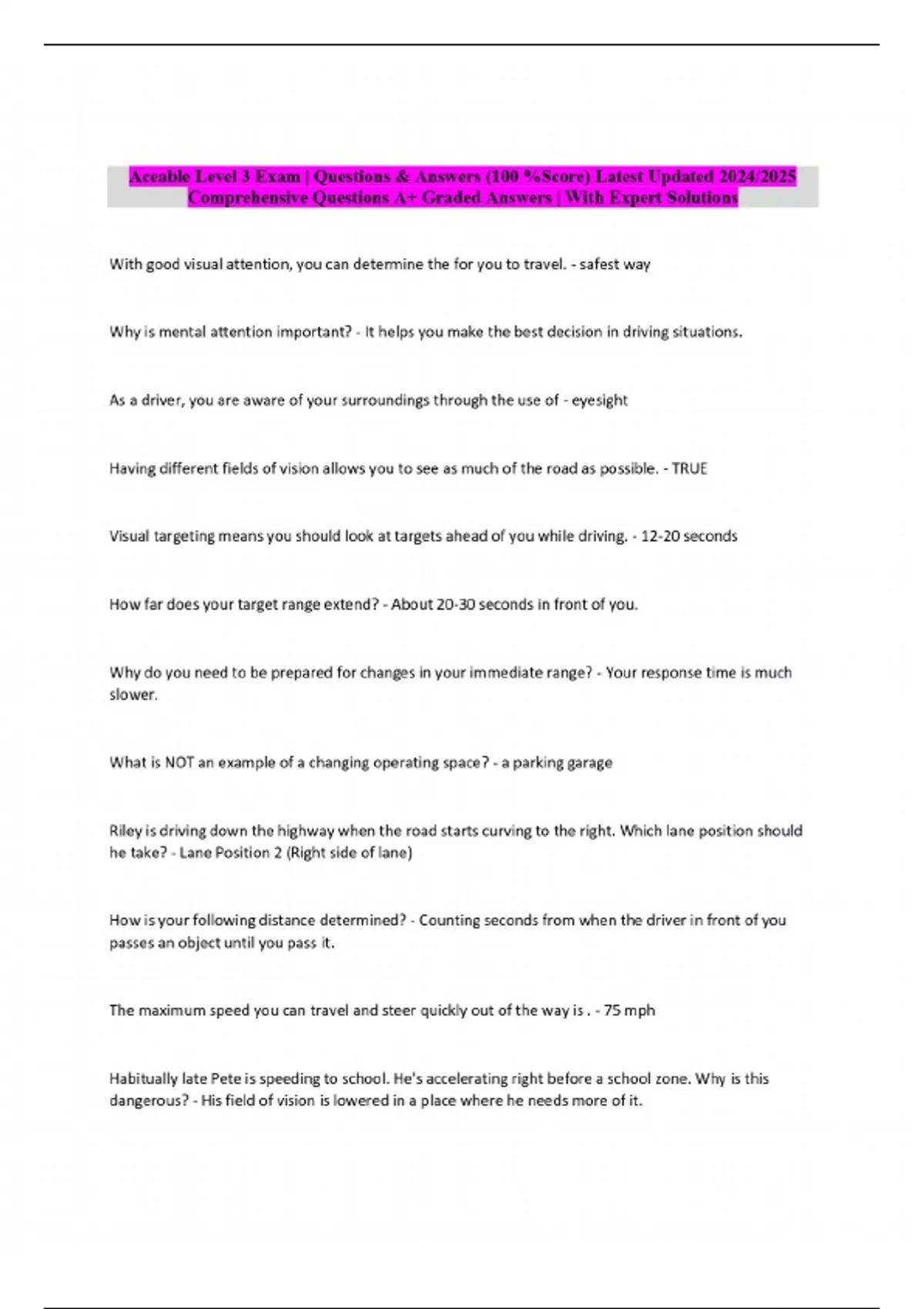 Aceable Level 3 Exam | Questions & Answers