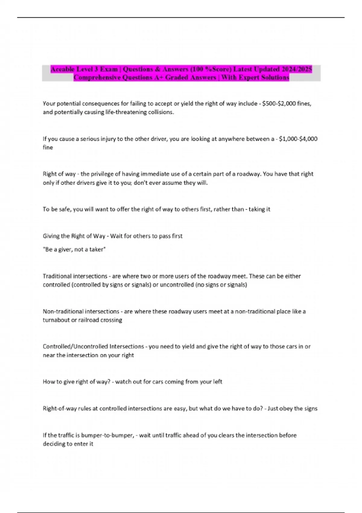 Aceable Level 3 Exam | Questions & Answers