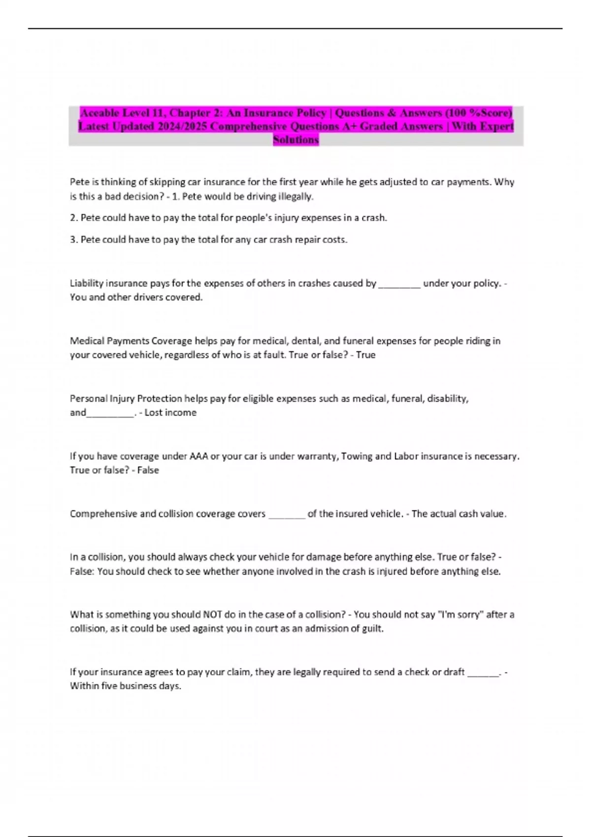 Aceable Level 11, Chapter 2: An Insurance Policy | Questions & Answers