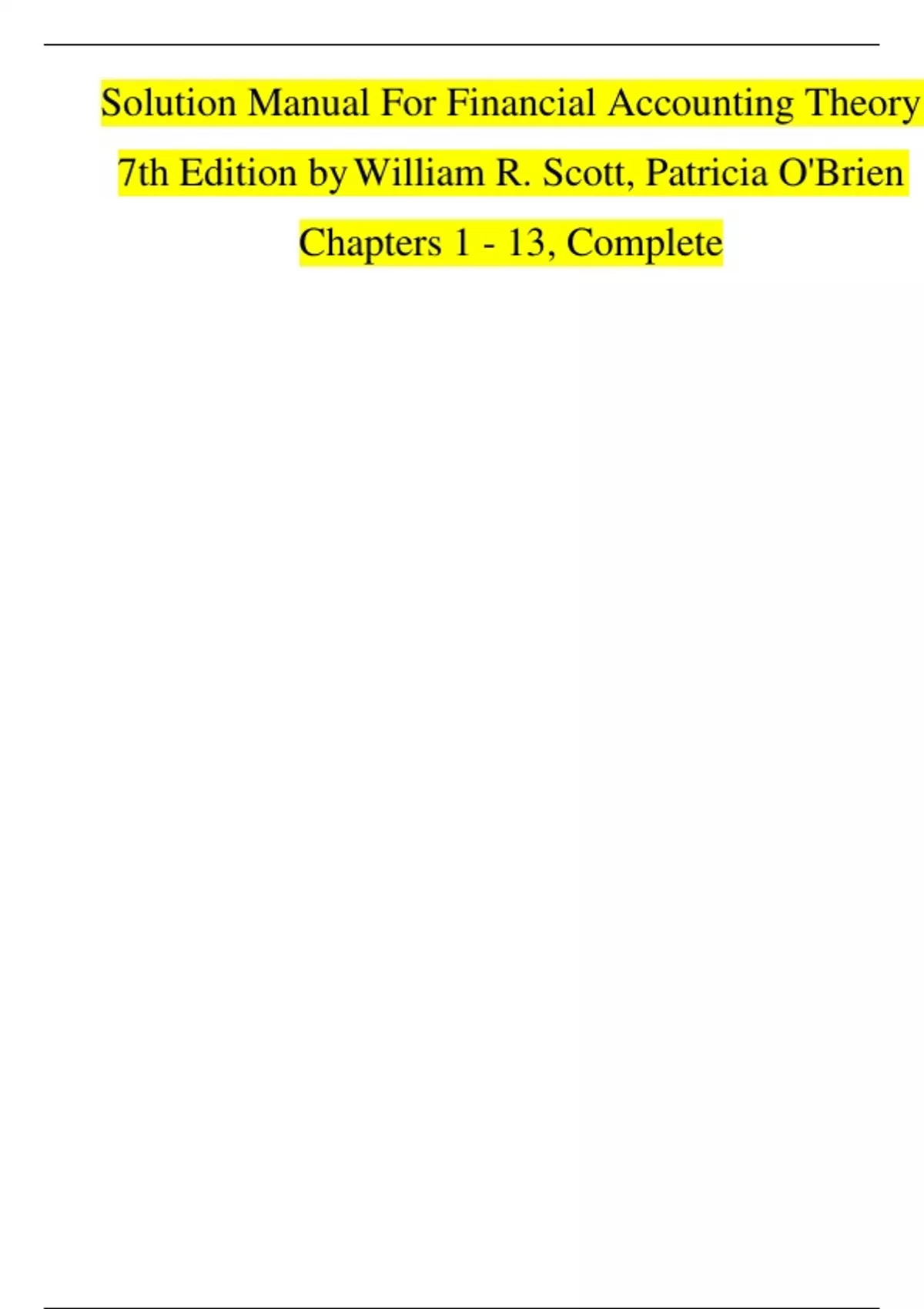 ,Scott, Financial Accounting Theory Instructor’s Solutions Manual Chapter 1
