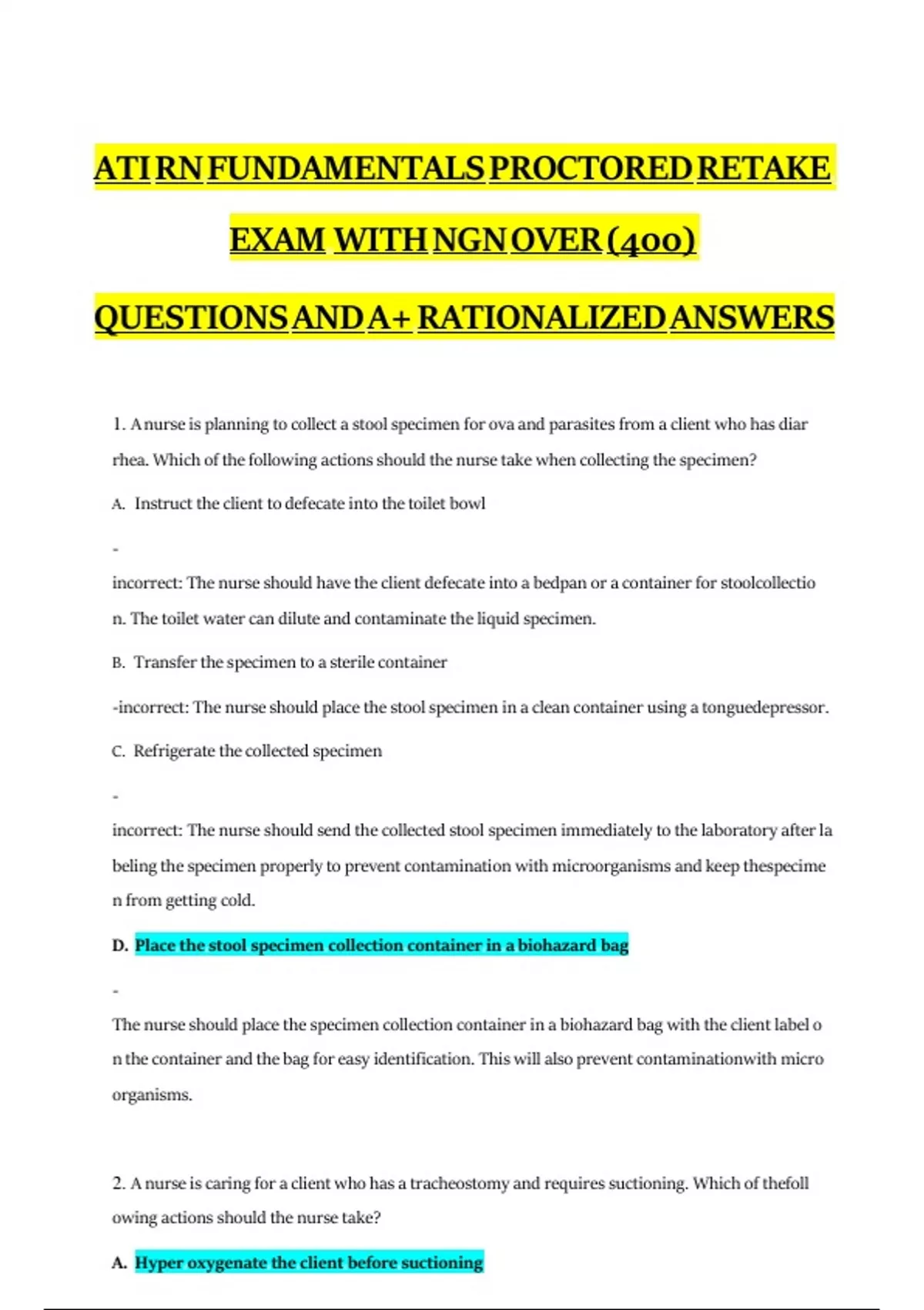 ATI RN FUNDAMENTALS PROCTORED RETAKE EXAM WITH OVER (400) QUESTIONS AND A+ RATIONALIZED ANSWERS (V1 ) ATI RN Fundamentals exam Proctored exam study guide ATI RN Fundamentals practice test 2023 nursing fundamentals exam 2024 ATI exam questions 2025 RN fundamentals answers ATI RN exam verified questions Proctored exam A and B versions Retake nursing fundamentals exam NGN nursing exam guide RN fundamentals practice questions ATI fundamentals test prep Nursing fundamentals study material ATI proctored exam preparation RN fundamentals exam retake ATI RN test verified answers Nursing fundamentals exam help ATI RN proctored test tips Verified ATI exam questions 2023 RN fundamentals study guide NGN 2024 nursing exam prep ATI exam A and B study strategies RN fundamentals review guide Proctored nursing fundamentals test Exam prep for ATI fundamentals Nursing exam verified answers ATI RN retake preparation Fundamentals of nursing exam prep ATI RN fundamentals guide 2025 ATI RN Fundamentals Proctored Exam A study tips 2023 How to pass ATI RN Fundamentals Proctored Exam B 2024 ATI RN Fundamentals retake strategies 2025 NGN A+ verified questions for ATI RN Fundamentals exam ATI RN Fundamentals study guide with practice questions Best resources for ATI RN Fundamentals Proctored Exam 2023 ATI RN Fundamentals exam content outline 2024 Tips for improving ATI RN Fundamentals test scores ATI RN Fundamentals Proctored Exam A vs B differences How to prepare for ATI RN Fundamentals exam in 30 days ATI RN Fundamentals exam retake policy 2025 NGN style questions for ATI RN Fundamentals practice ATI RN Fundamentals Proctored Exam time management tips Common mistakes to avoid on ATI RN Fundamentals exam ATI RN Fundamentals study group online ATI RN Fundamentals exam difficulty level comparison How to interpret ATI RN Fundamentals test results ATI RN Fundamentals exam format changes Best ATI RN Fundamentals practice exams with rationales ATI RN Fundamentals exam success stories and advice ATI RN Fundamentals exam topics to focus on 2024 How to overcome test anxiety for ATI RN Fundamentals ATI RN Fundamentals exam question types explained ATI RN Fundamentals study schedule for working nurses ATI RN Fundamentals exam prep courses worth the cost
