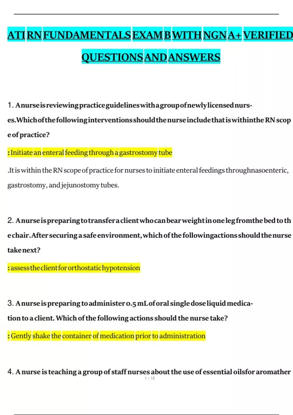 ATI RN FUNDAMENTALS EXAM B WITH A+ VERIFIED QUESTIONS AND ANSWERS ( V2 )