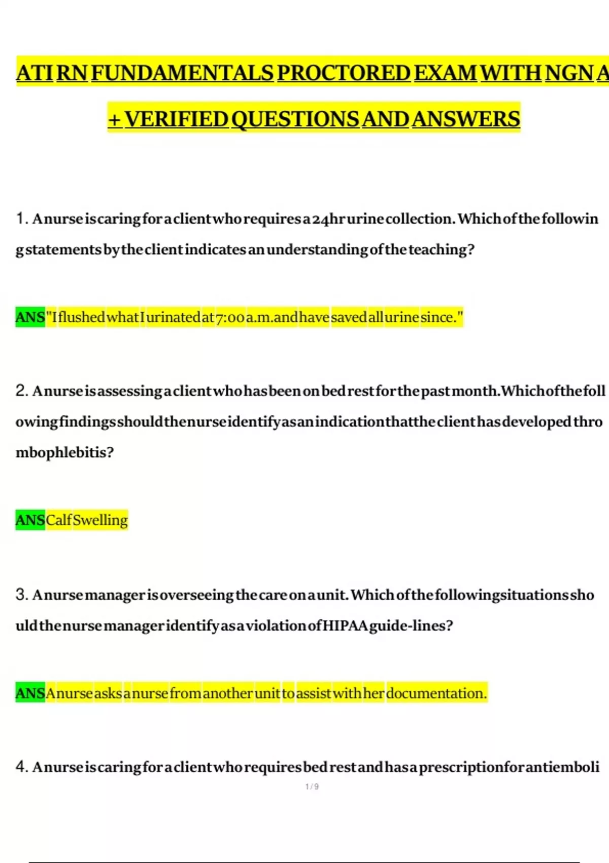 1. A nurse is caring for a client who requires a 24hr urine collection. Which of the followin