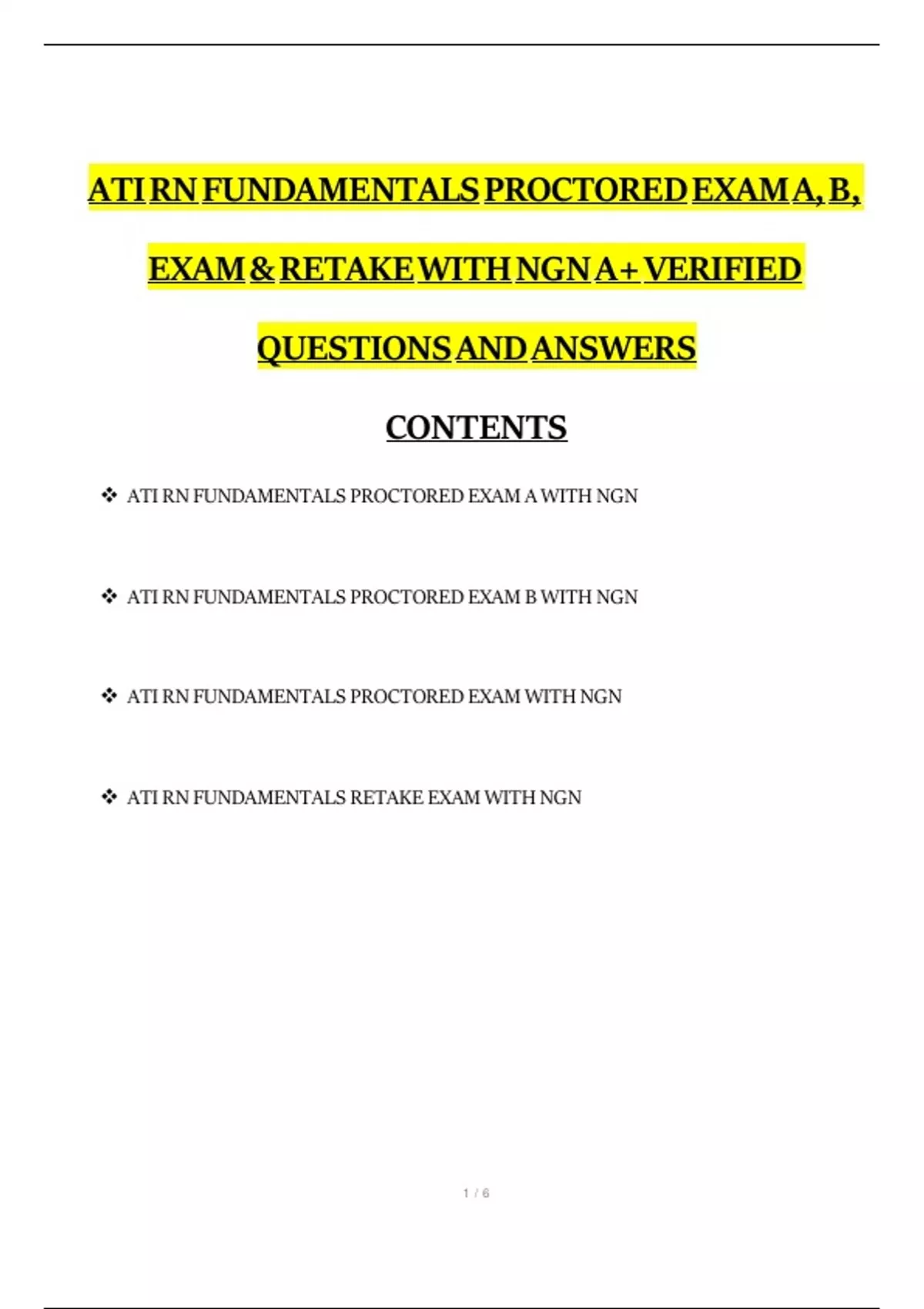 ATI RN FUNDAMENTALS RETAKE EXAM WITH NGN