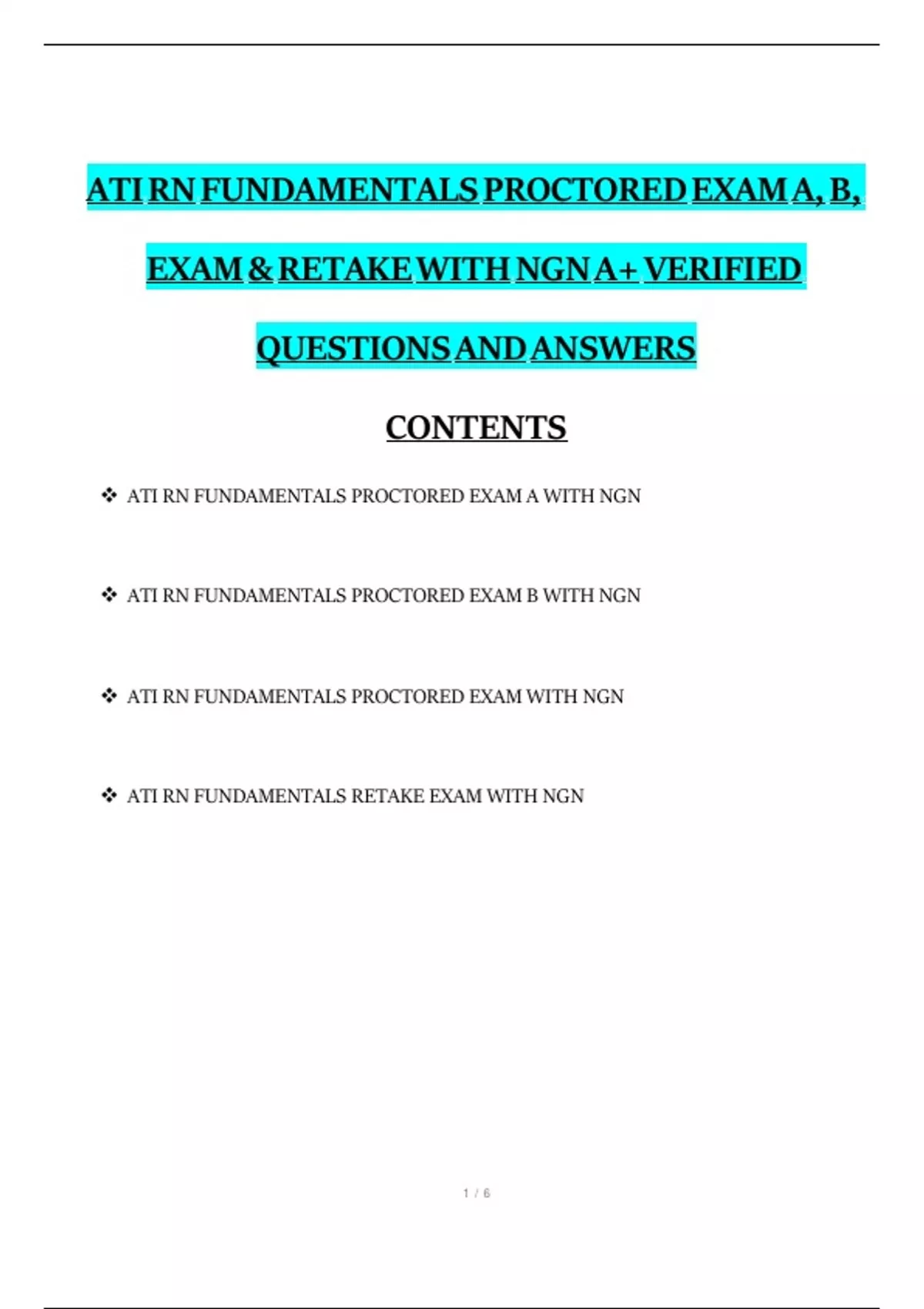 ATI RN FUNDAMENTALS RETAKE EXAM WITH NGN